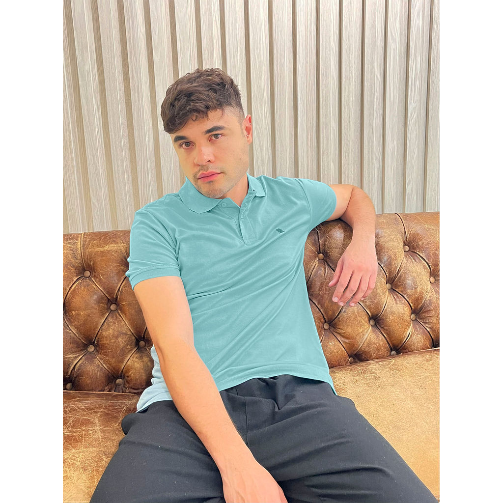 Polo Básica Masculina Com Botões Polo Wear Azul Médio