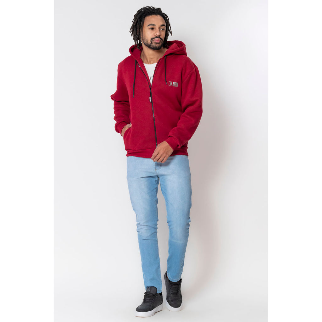 Blusa Moletom Masculina Com Zíper Polo Wear Vermelho Médio