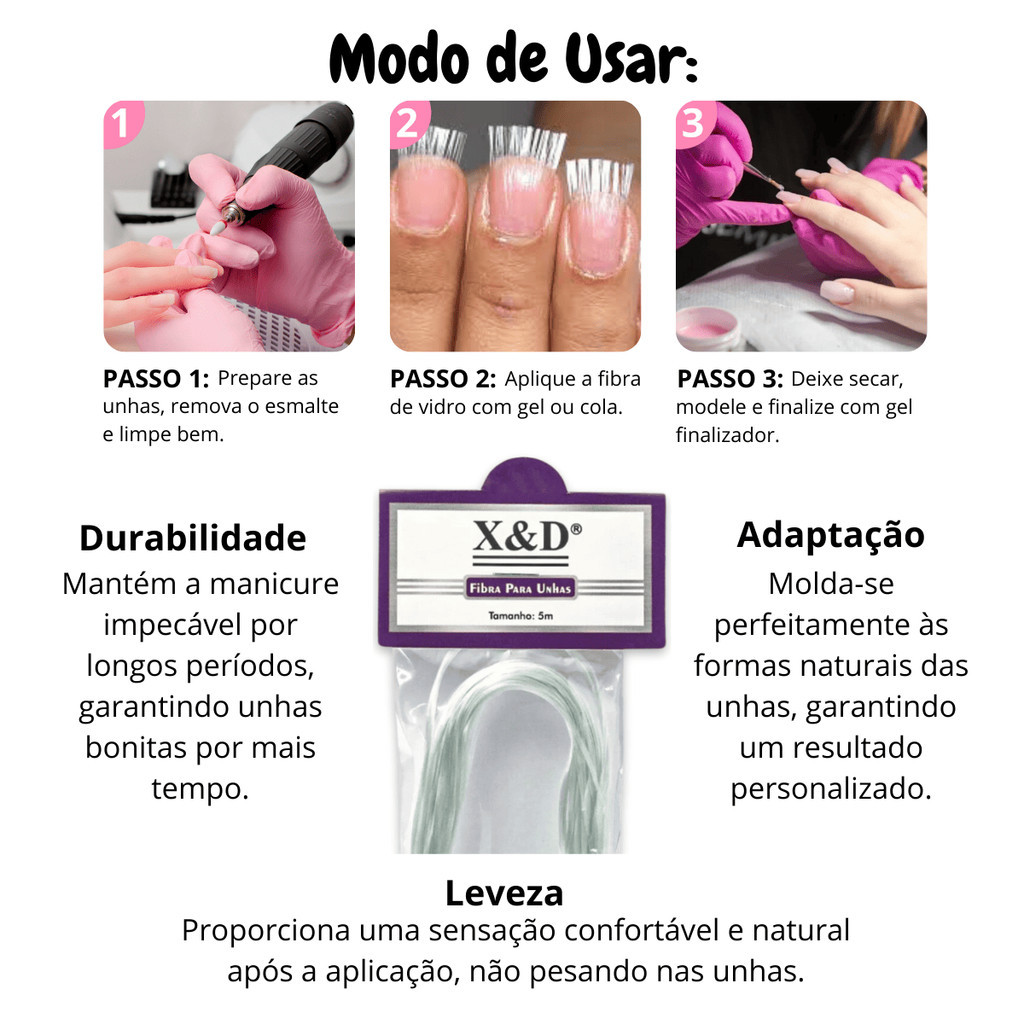 Fibra De Vidro 2m Para Alongamento De Unha Postiça X&d Manicure