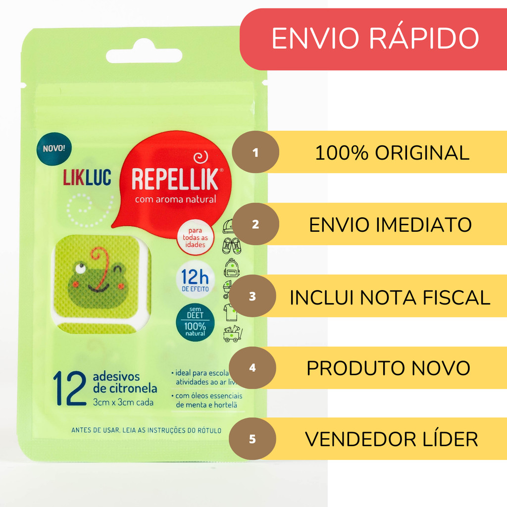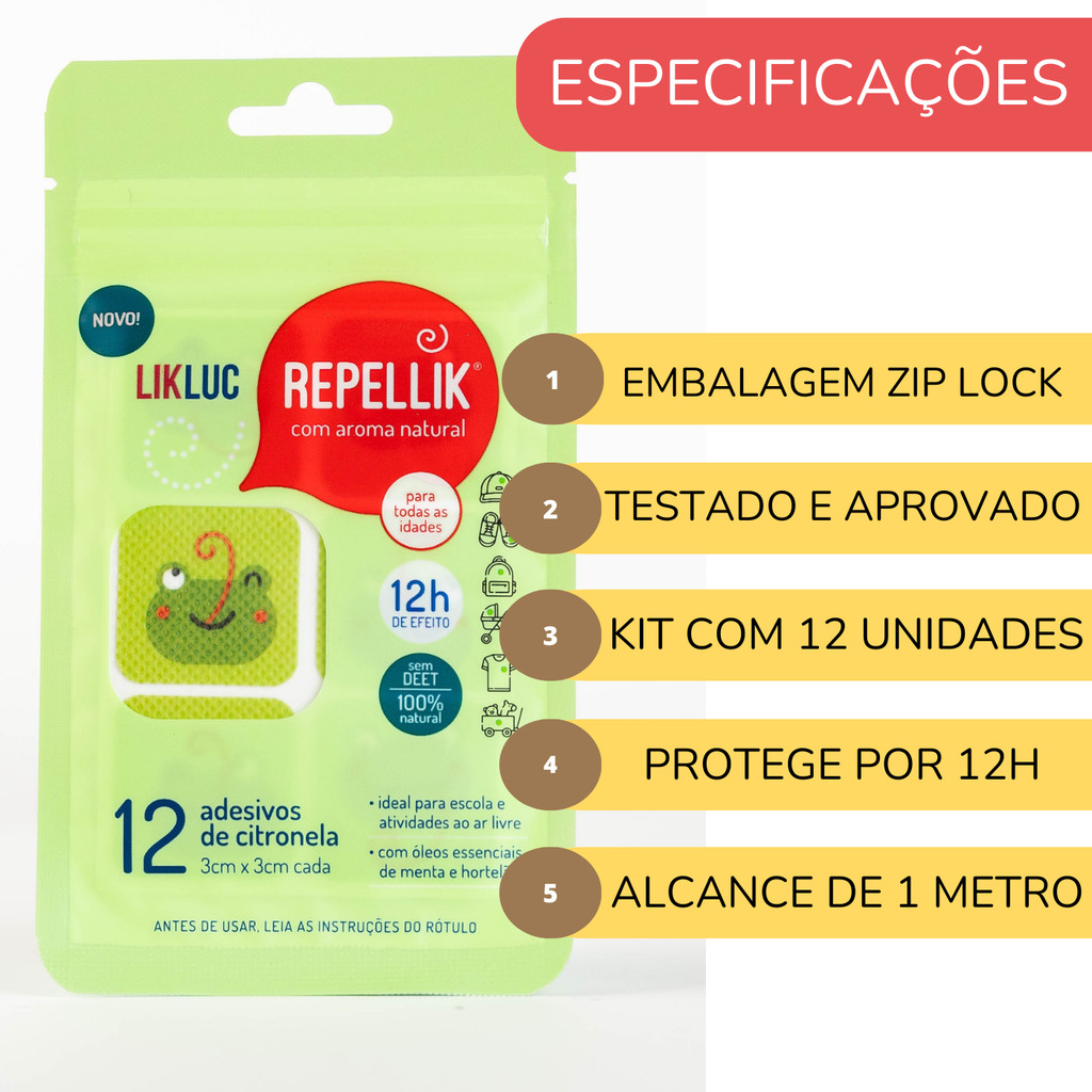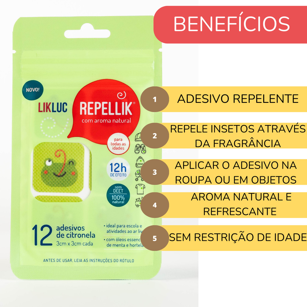 Adesivos Repelentes Repellik Proteção Natural contra Insetos Infantil Seguro Sem Cheiro Longa Duração Uso Diário Cartela