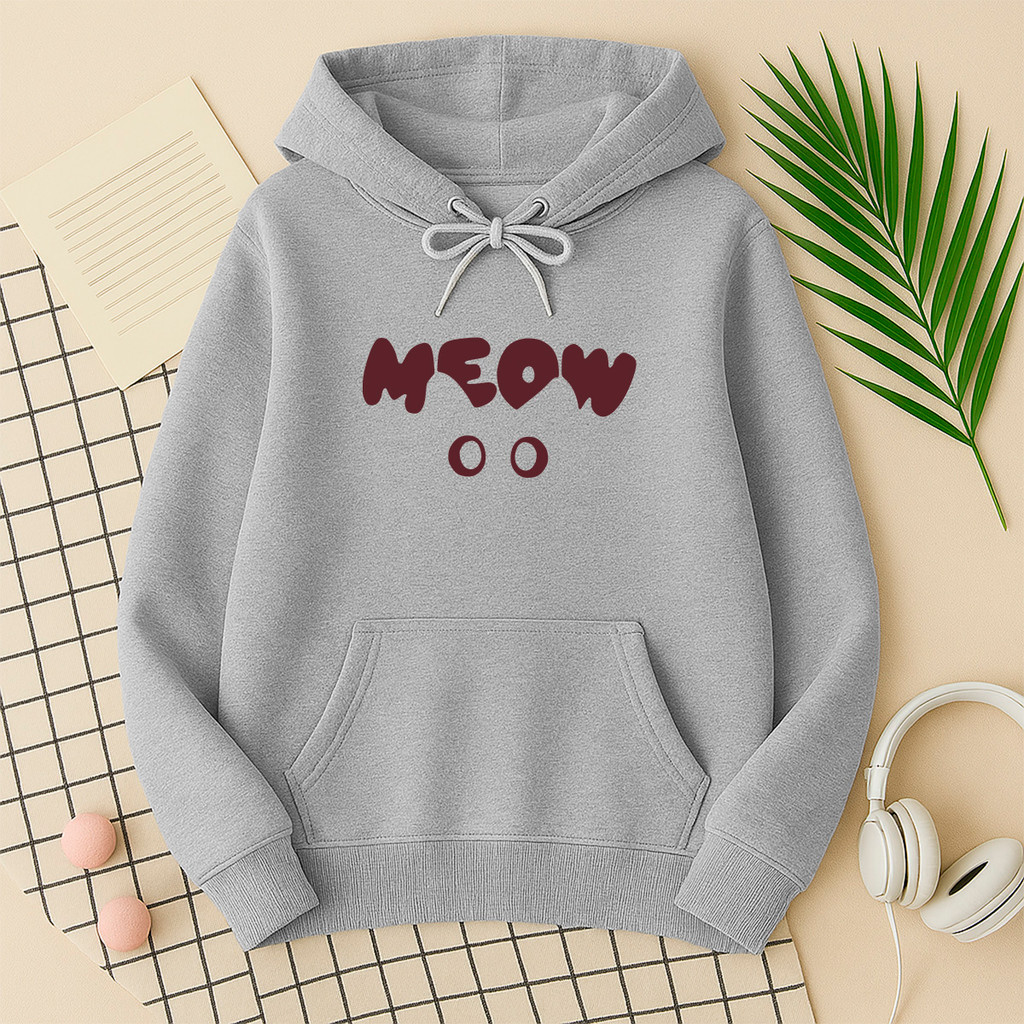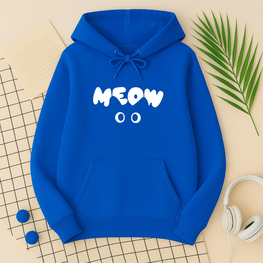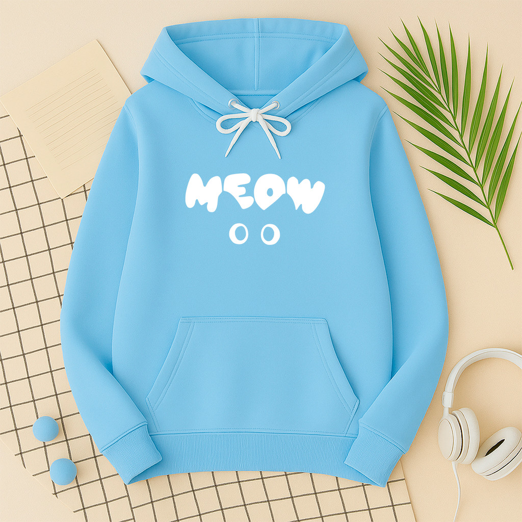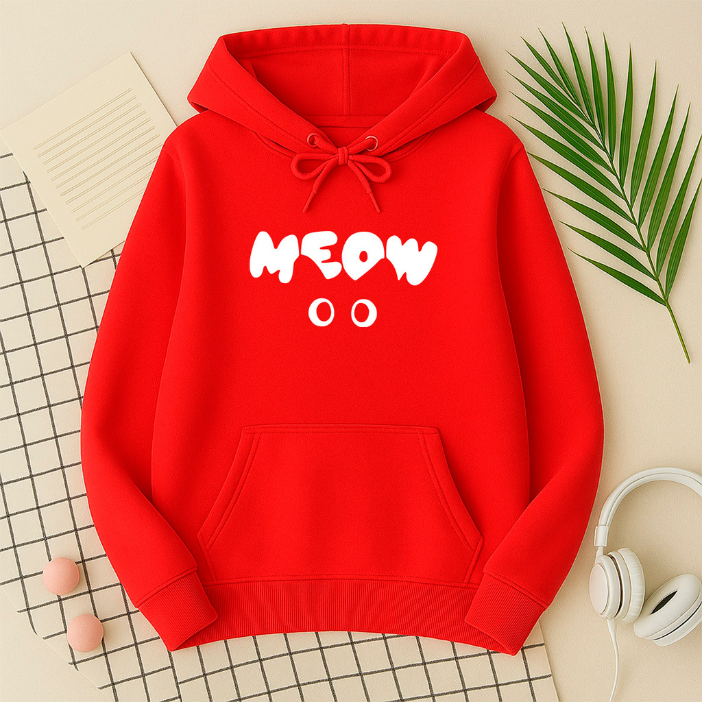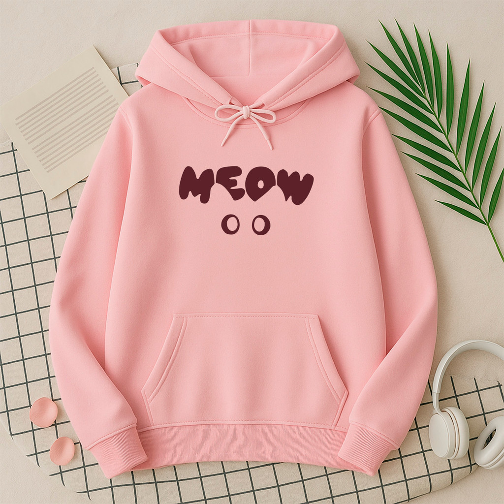 Blusa De Frio Moletom Feminino Capuz Meow Fofo Casaco Canguru Flanelado Premium Algodão