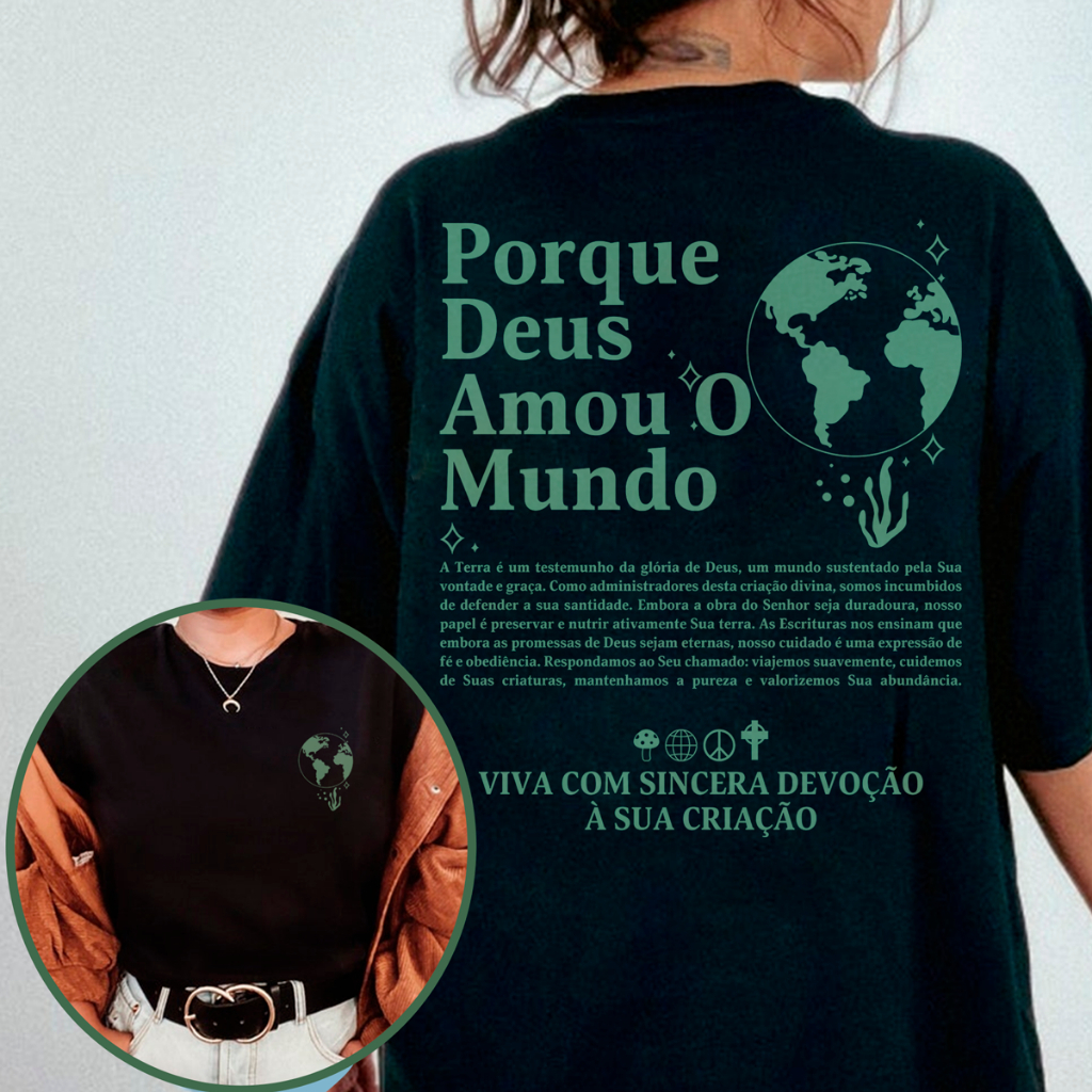 Camiseta Oversized ou Básica T-shirt Unissex 100% Algodão Gospel Cristã Porque Deus Amou O Mundo