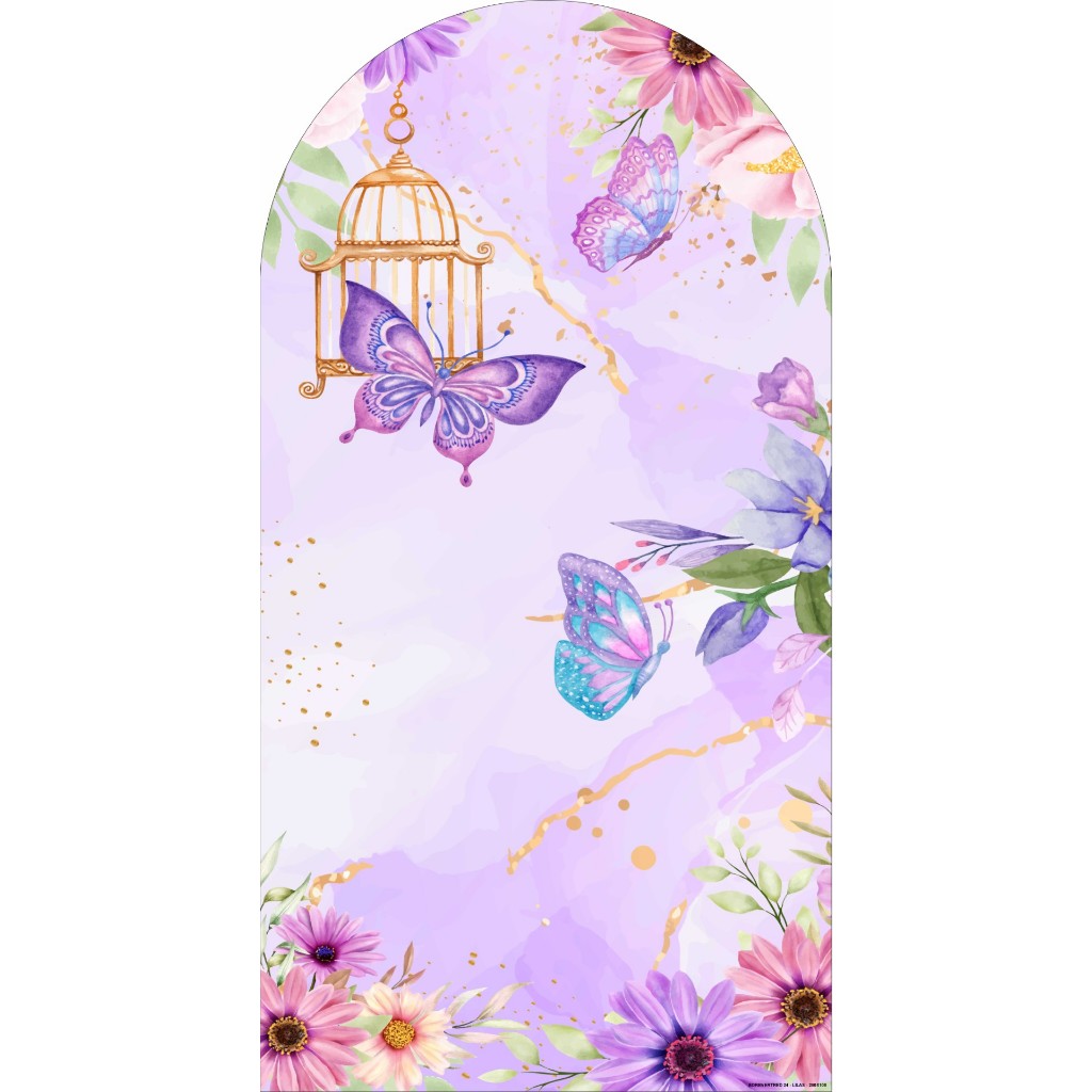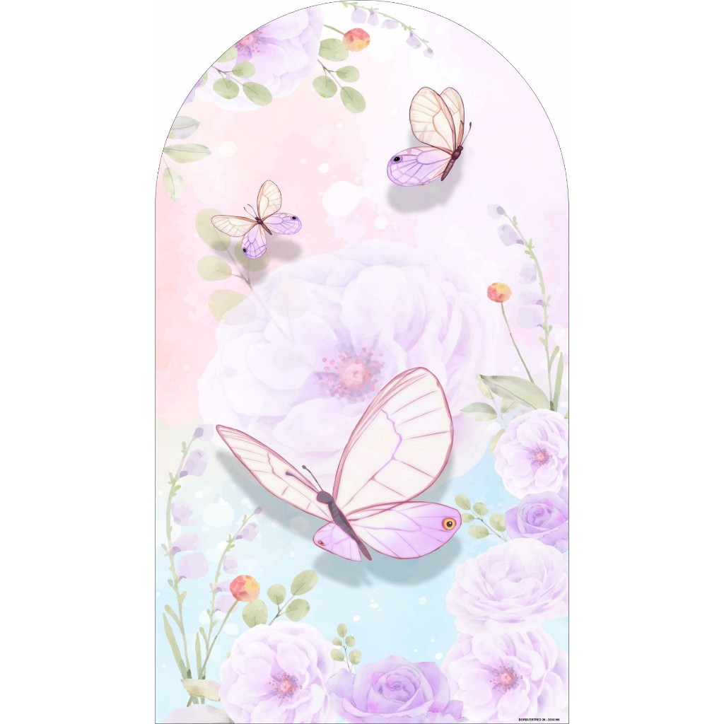 PAINEL DE FESTA BORBOLETAS JARDIM ENCANTANDO - ROMANO 2X1 EM TECIDO SUBLIMADO