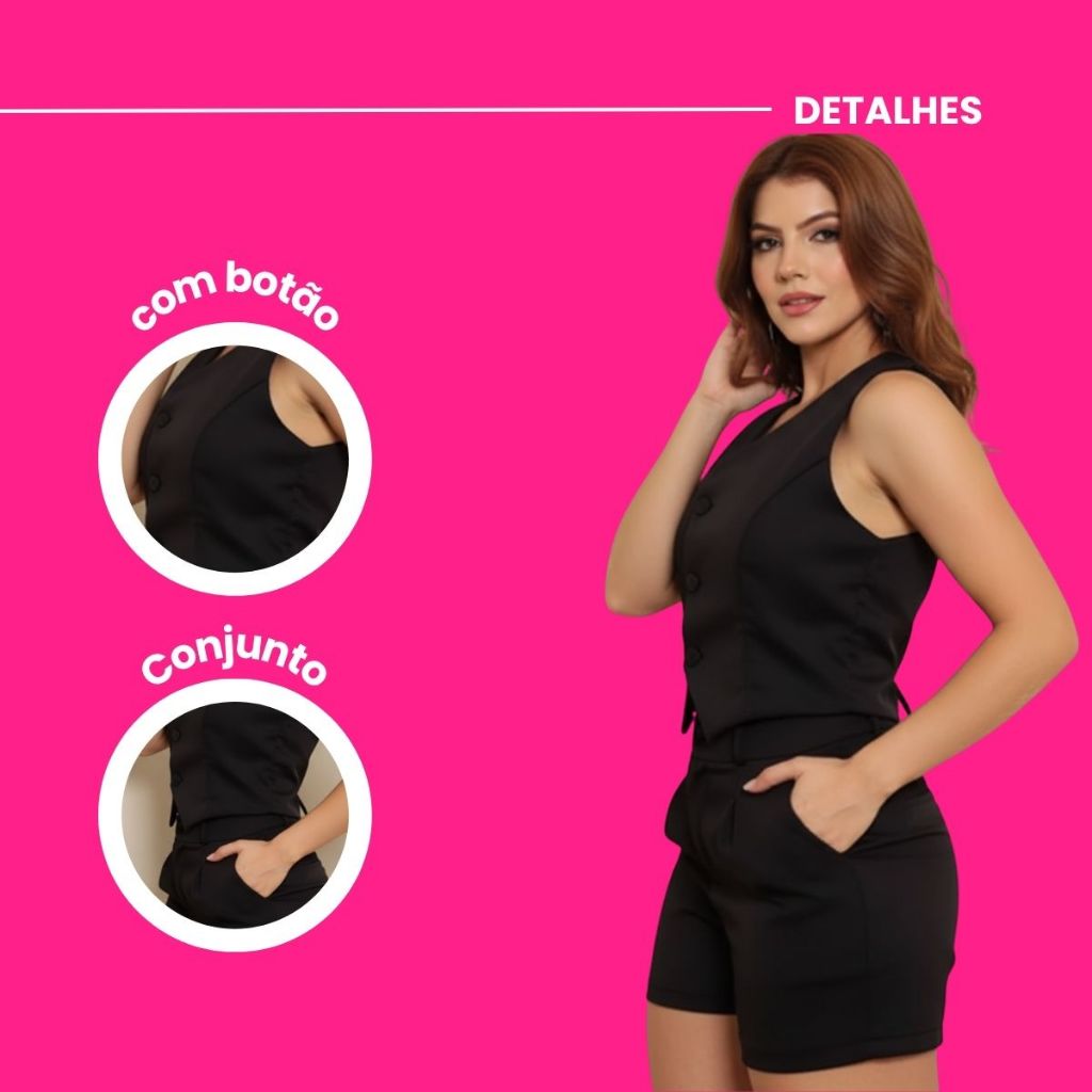 Conjunto Feminino Alfaiataria Social Colete E Short Estilo Sofisticação E Envio Imediato