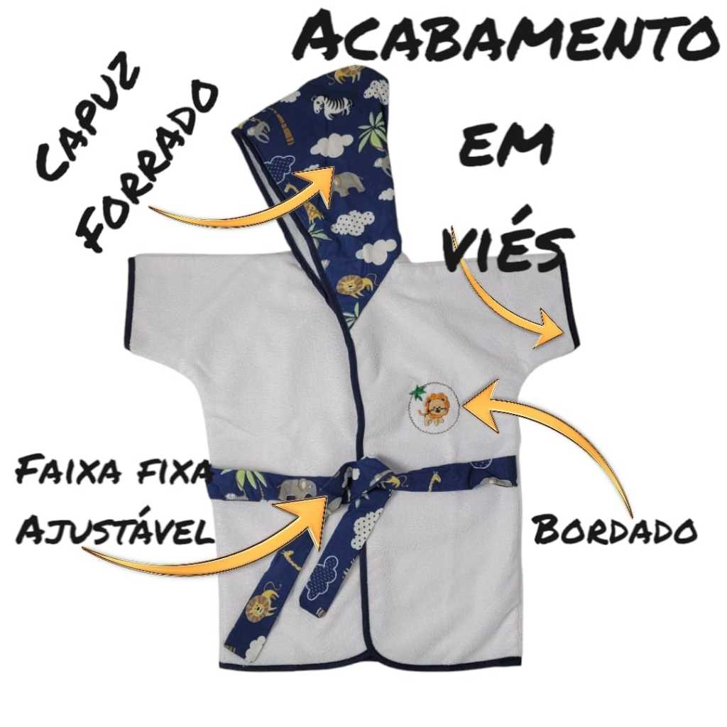 Roupao Com Capuz Infantil Atoalhado Diversas Cores e Acabamentos Capuz Forrado Cinto Ajustável Bordado No Próprio Tecido