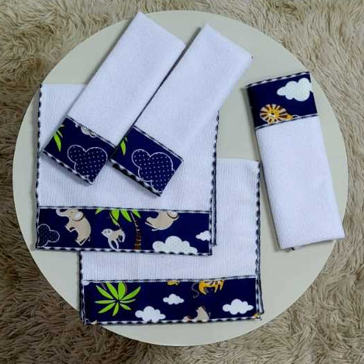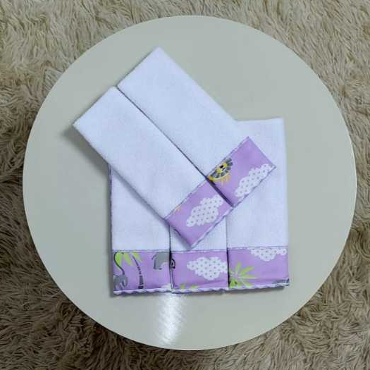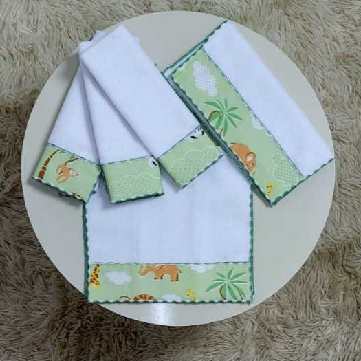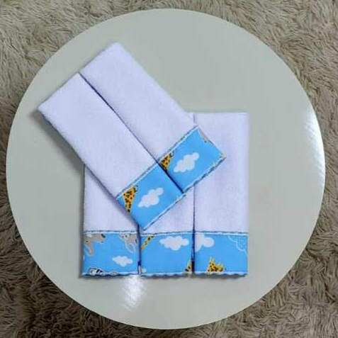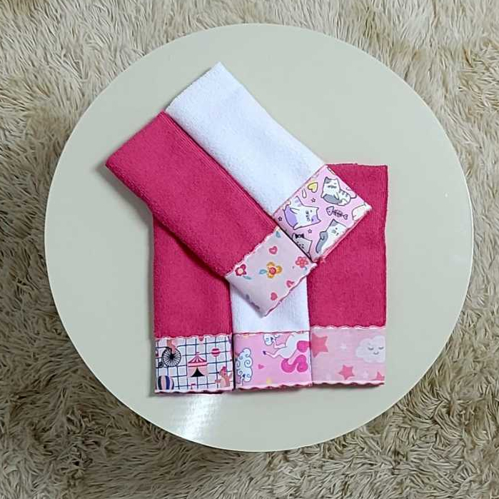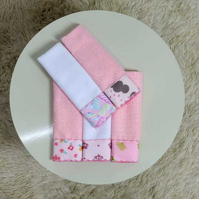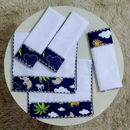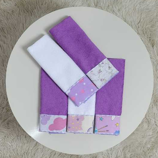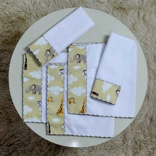 Kit Ombro Boca Babete Felpudo Atoalhada Com 05 Unidades Overlocada Estampas Variadas Entrega Imediata Em Estoque
