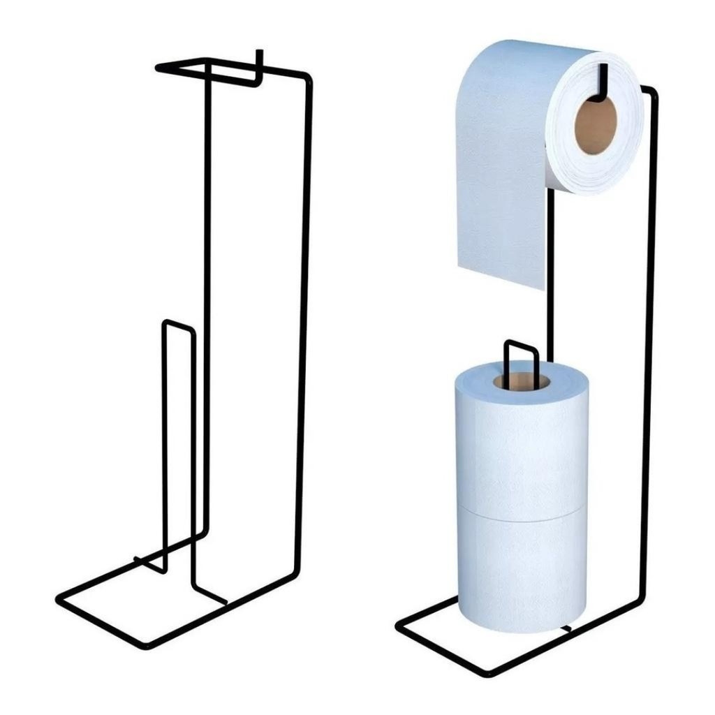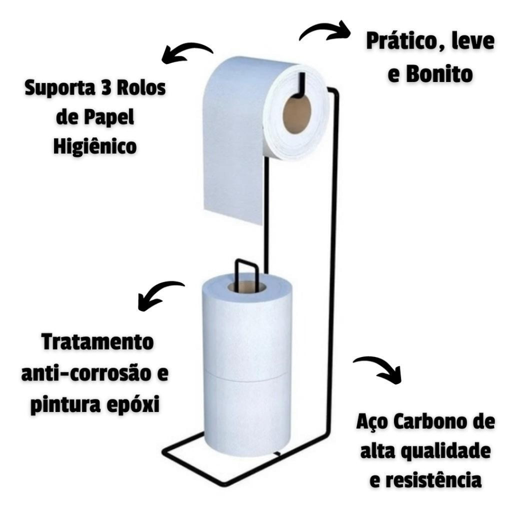 Suporte Porta Papel Higiênico De Chão 3 Rolos PRETO