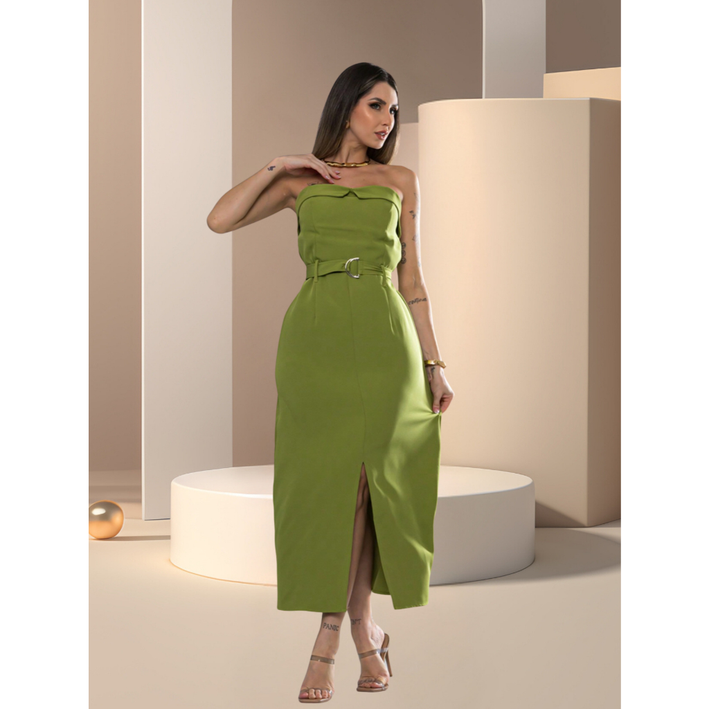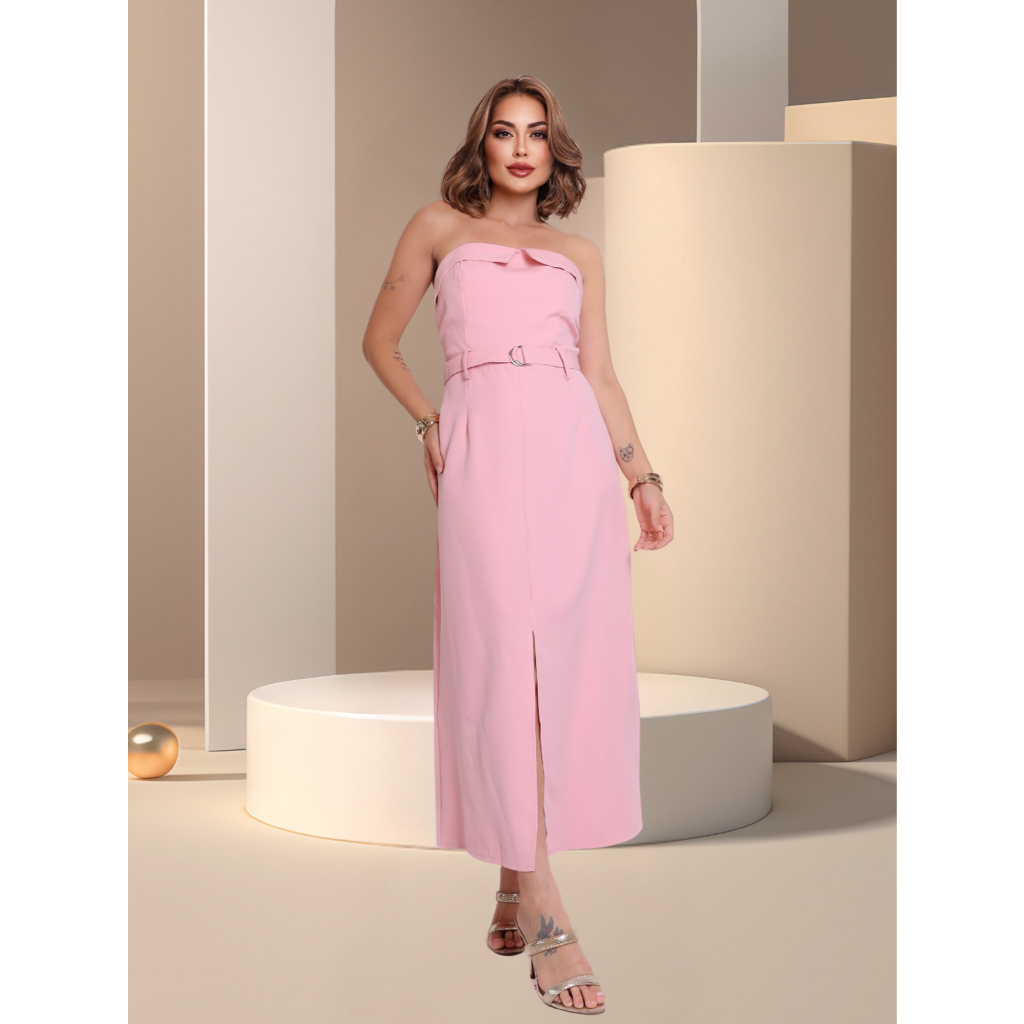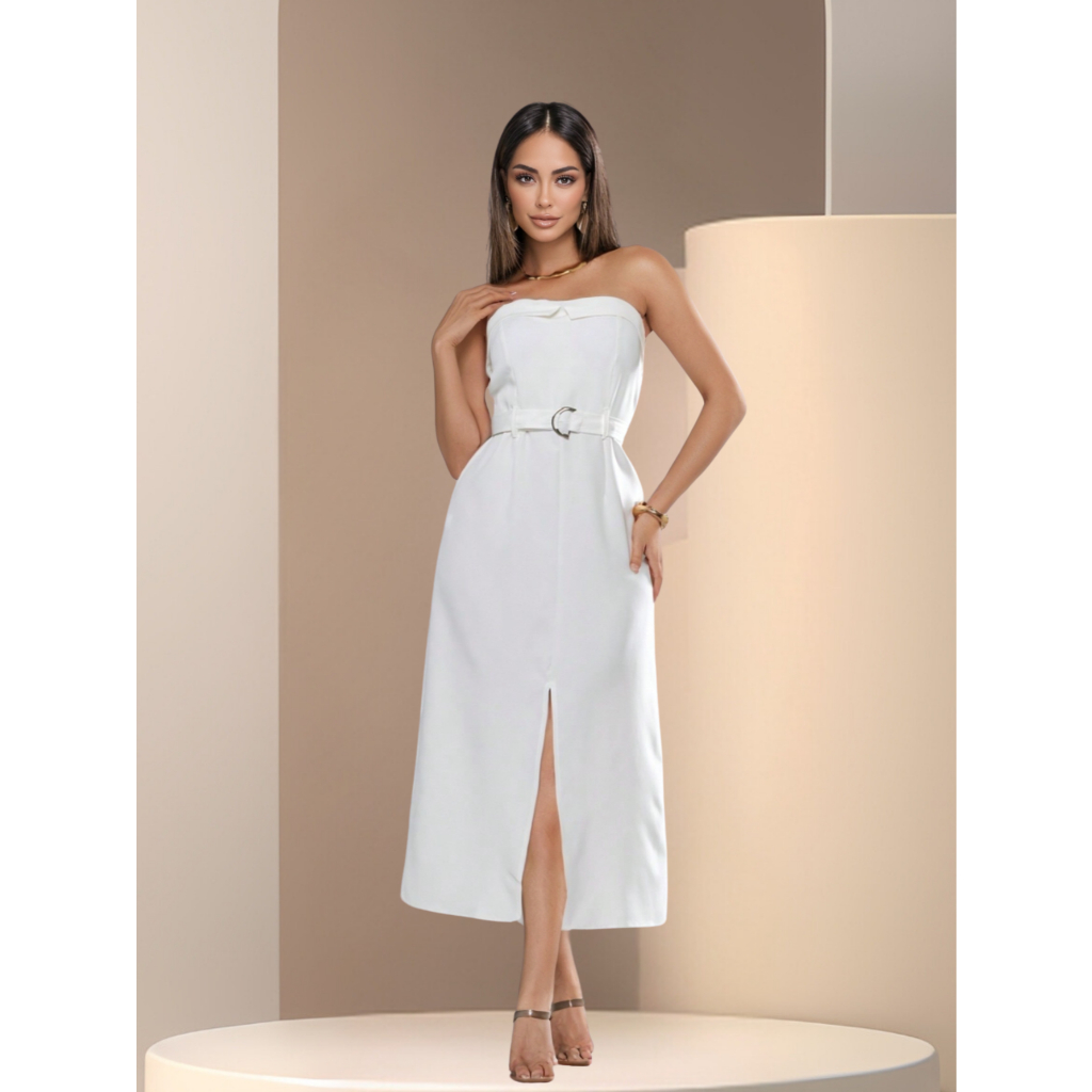 Vestido Com Cintos Sem alça de alfaiataria-luxo