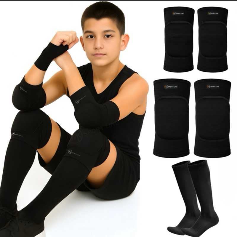 Joelheira + Cotoveleira Clássica Infantil Juvenil Goleiro Futsal ou Volei skate Patins
