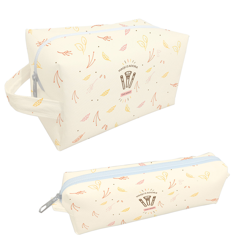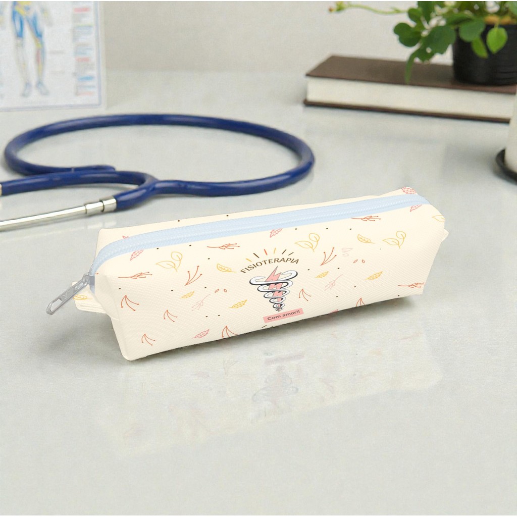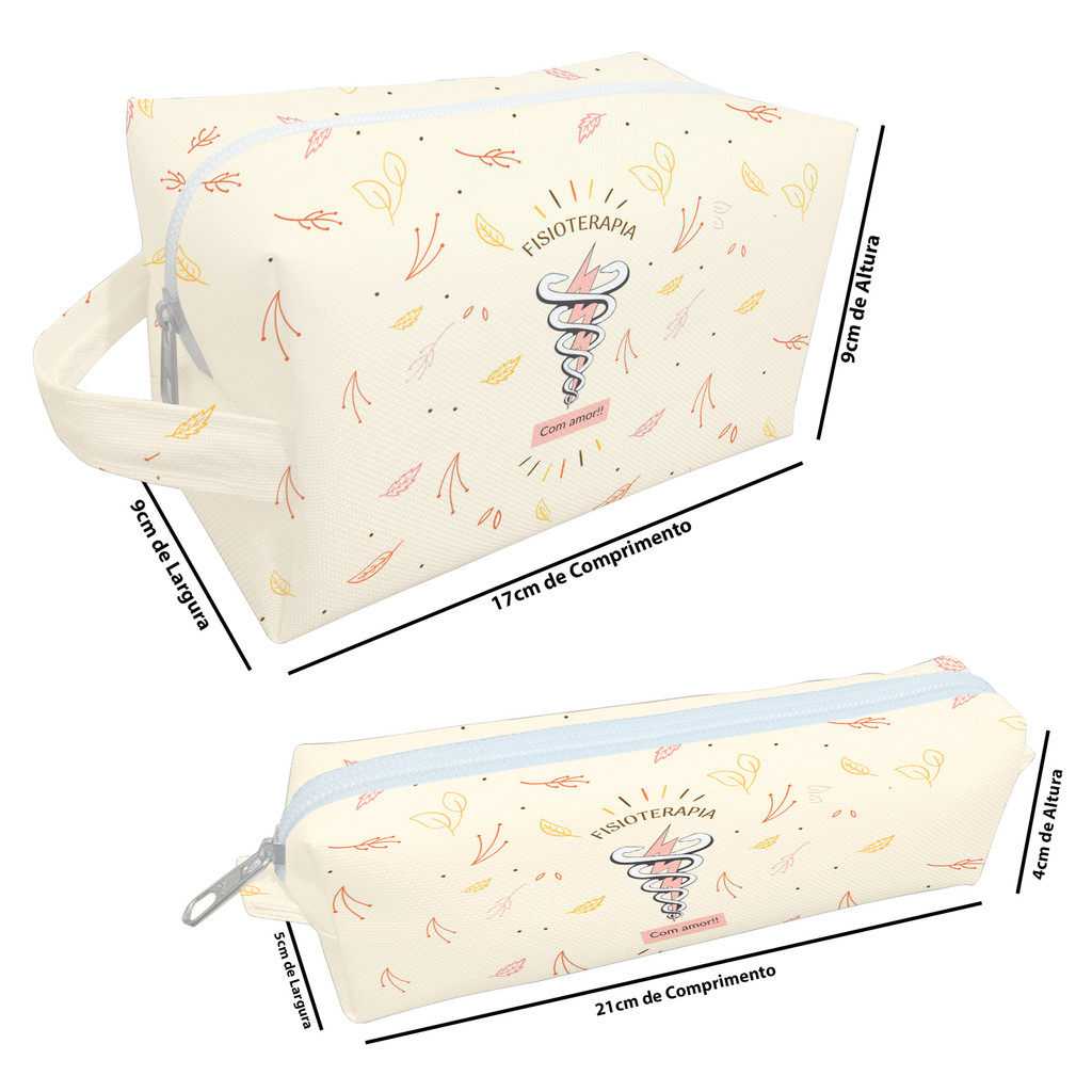 Necessaire Fisioterapia Bege Estojo Organizadora Bolsinha Estampa Profissões Saúde Símbolo Raio Folhas