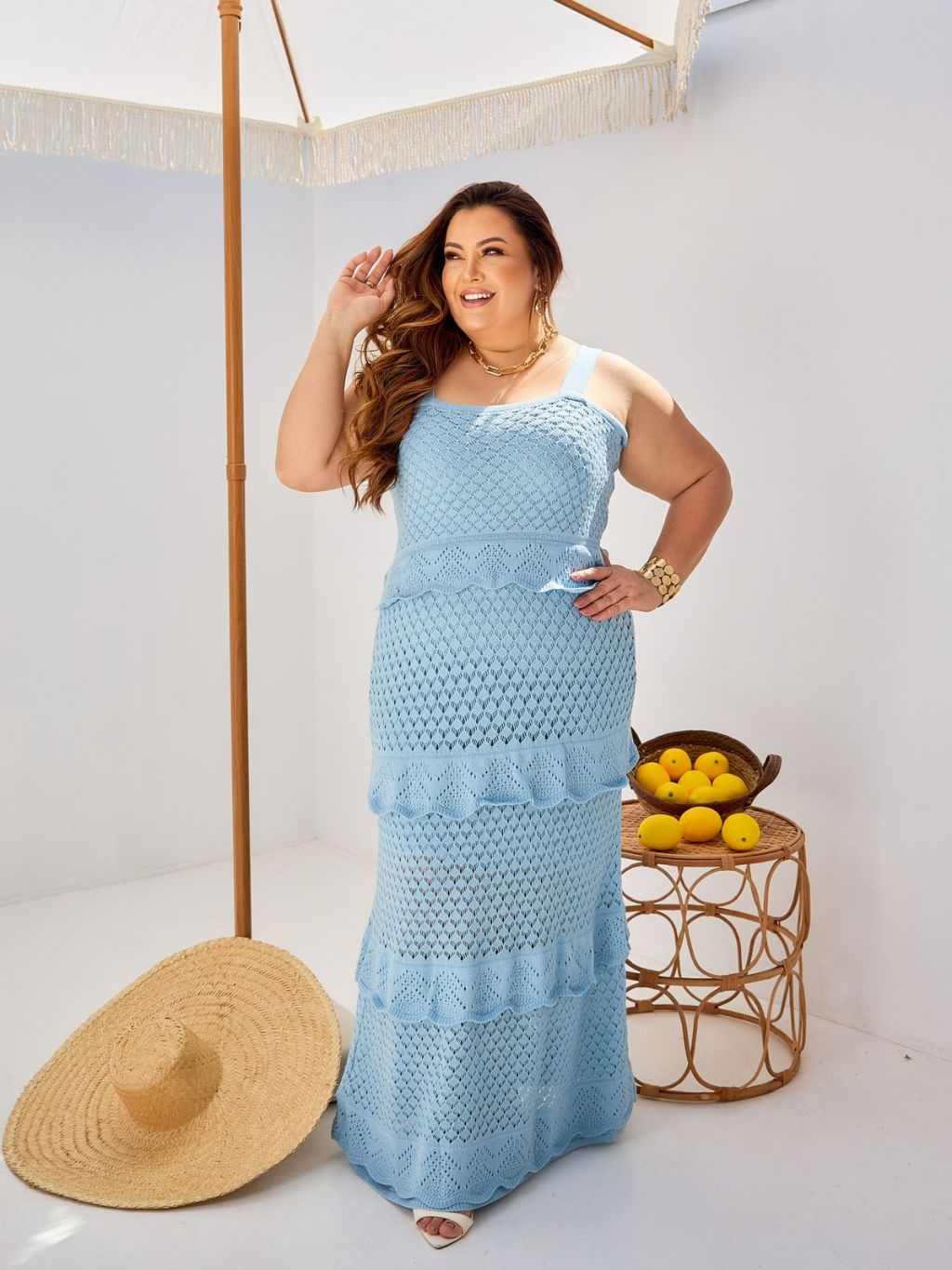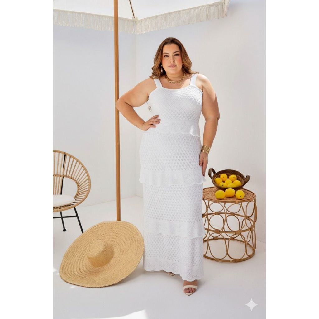 Vestido de trico tricot de modal rendado alça veste do 46 ao 52 plus size rendado com forro verao