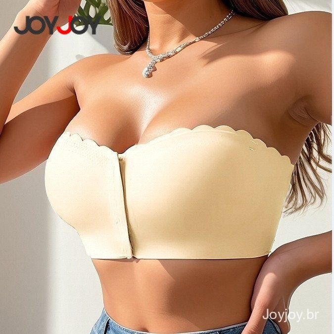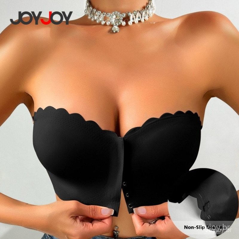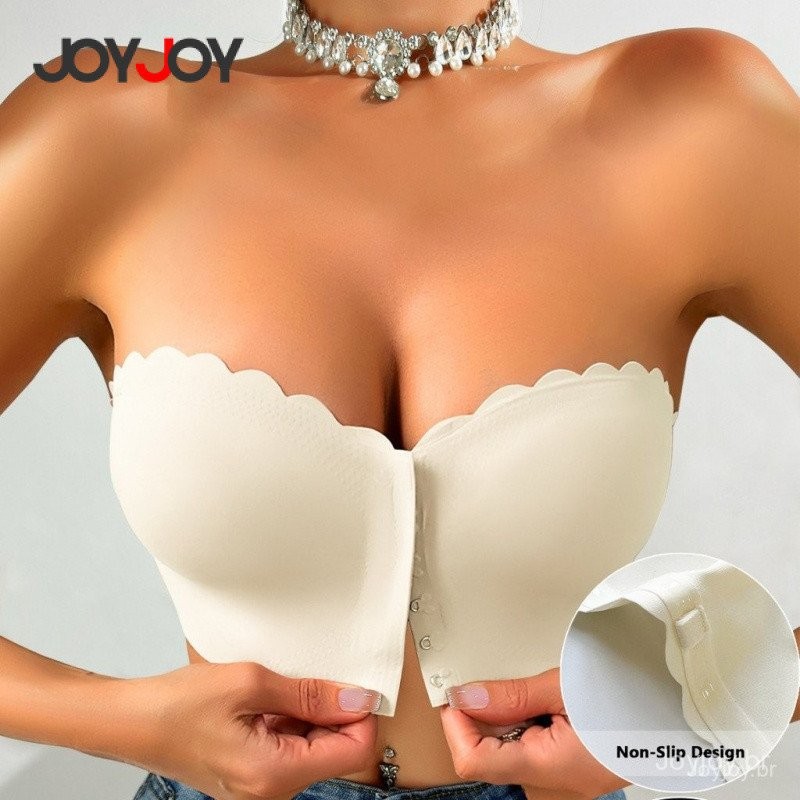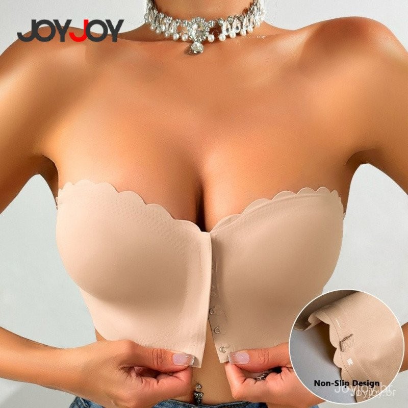 Joyjoy Sutiã Reforçado Tomara que Caia Plus Size Push-up Sexy,Sem Costura, Sem Aro, com Fecho Frontal e Alças Removíveis
