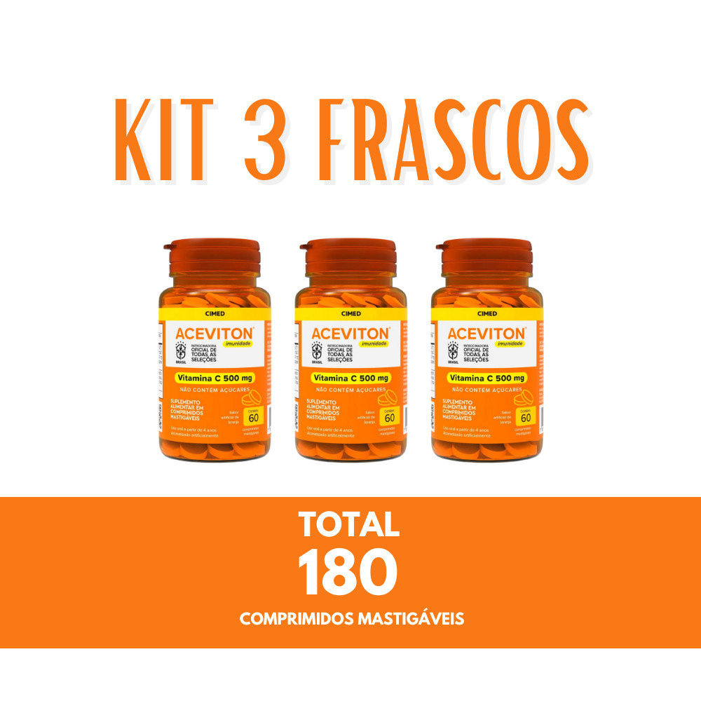 Kit 3 Aceviton Imunidade Vitamina C 500mg - 60 Cpr - Cimed
