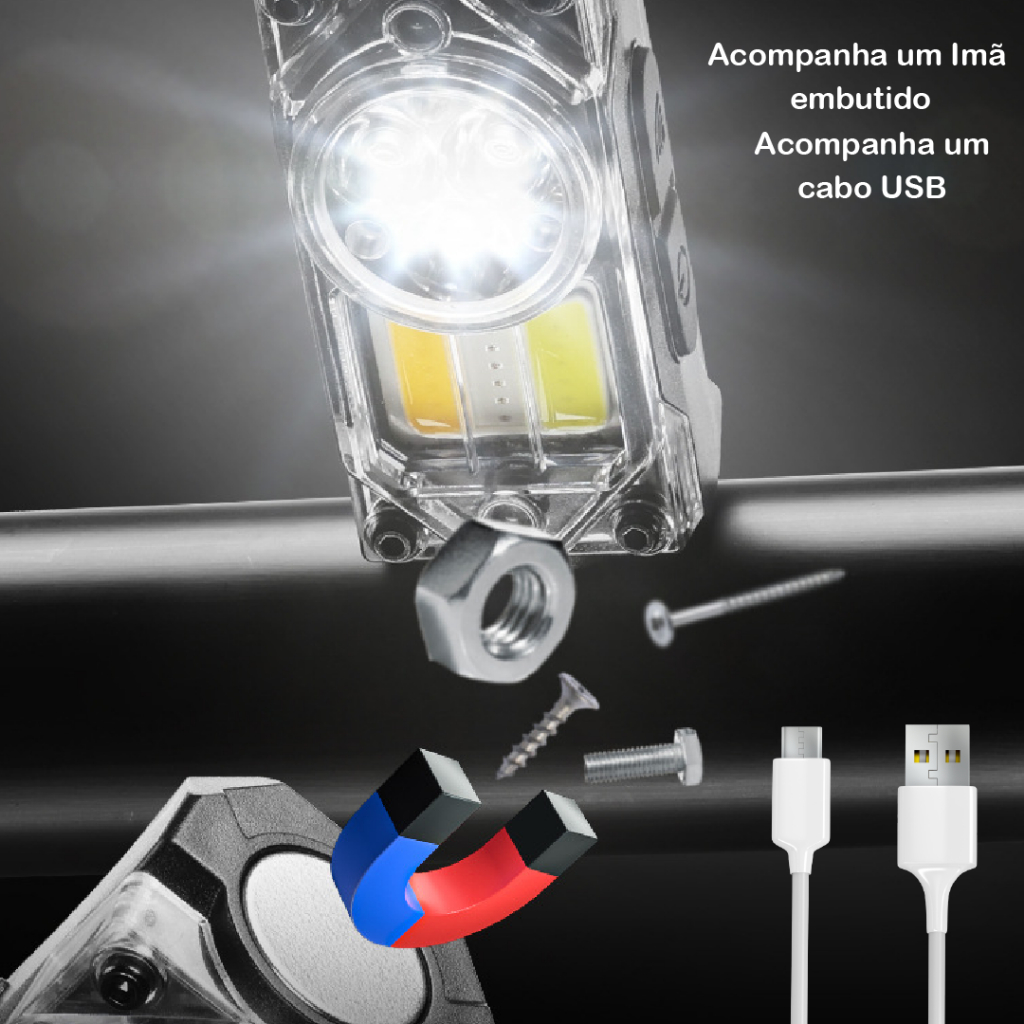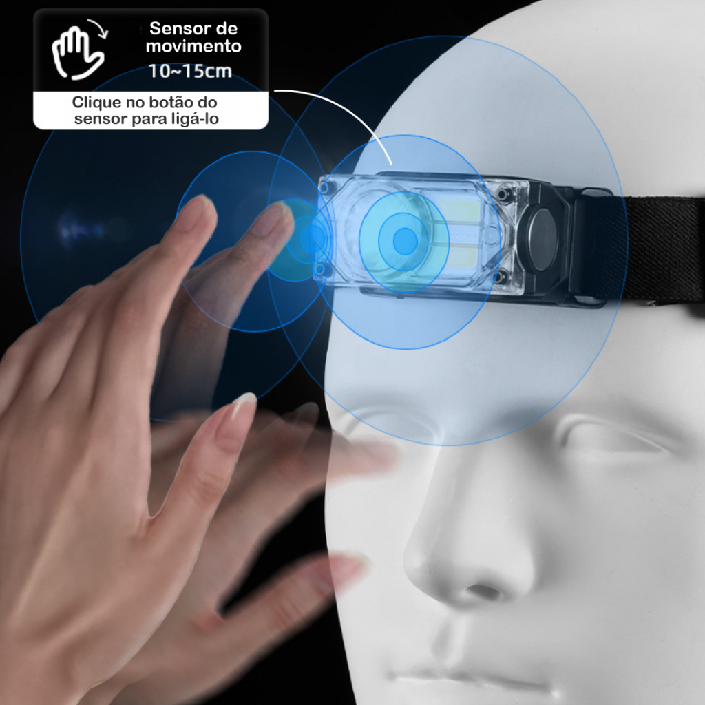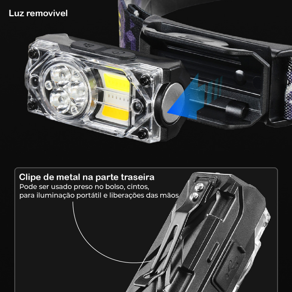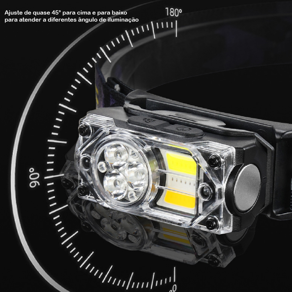 Lanterna para cabeça LED 3000 Lumens 3 em 1 Luminária Profissional Recarregável com USB