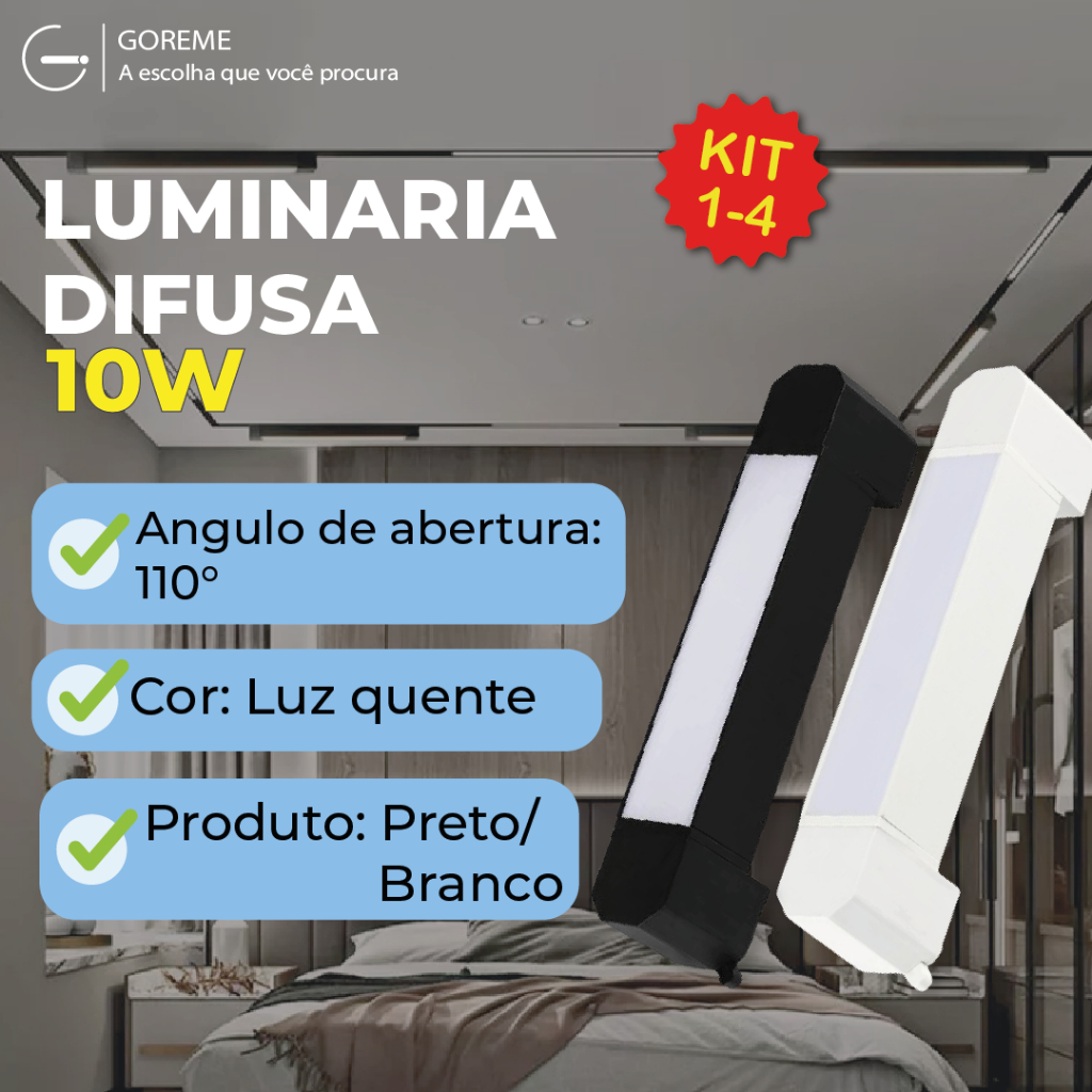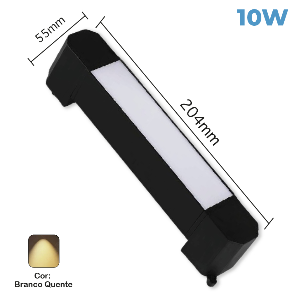 Luminária Difusa Led Slim Para Trilho Eletrificado 10W Branco Quente 3000K na cor Branco e Preto para ambientes Internos e Externos