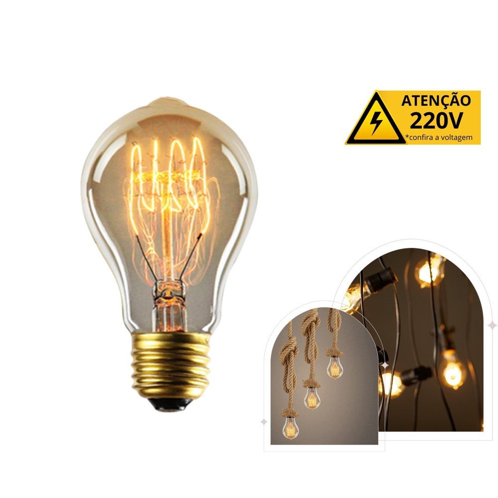 Kit 10 Lâmpada Filamento Carbono A19 40W E27 LUZ QUENTE (AMARELO) Âmbar 110V~220V