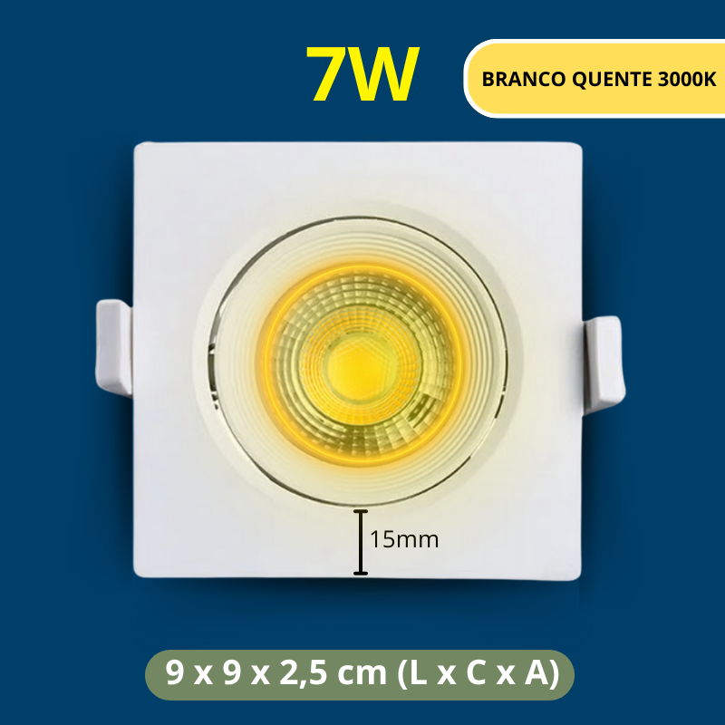 Kit 10 Luminária Spot Led Quadrado Direcionável 7W Embutir Gesso Teto Luz Quente ou Fria Bivolt