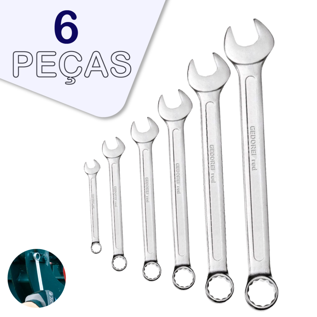 24 Peças Chave Combinada Profissional Aço Especial Cromada 6mm até 13mm cor prata