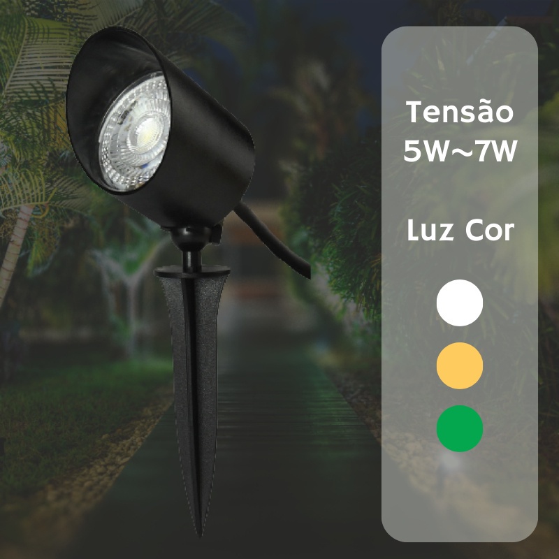 Luminária Espeto Jardim LED 5W | Luz de Gramado | À Prova D'àgua Avançada | Luz Branco Frio 6500K (Branco) | Branco Quente 3500K (Amarela) | Verde