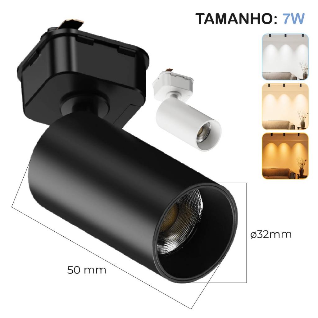 Kit 5 Spot para Trilho 7w Preto | Branco | Luz Branco Frio | Branco Neutro| Branco Quente