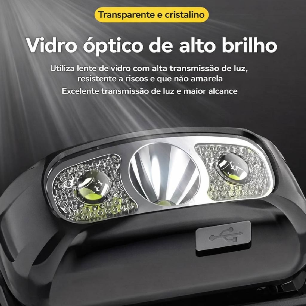 Lanterna de Cabeça Led Alta Potência com vidro óptico carregador USB Bivolt