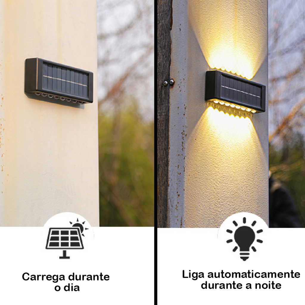 Kit 8 Luminária Arandela Solar 10 LED Luz Branco Quente para Parede a Prova dágua Spot para parede