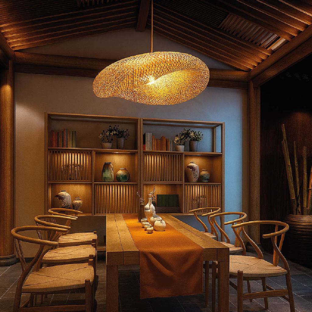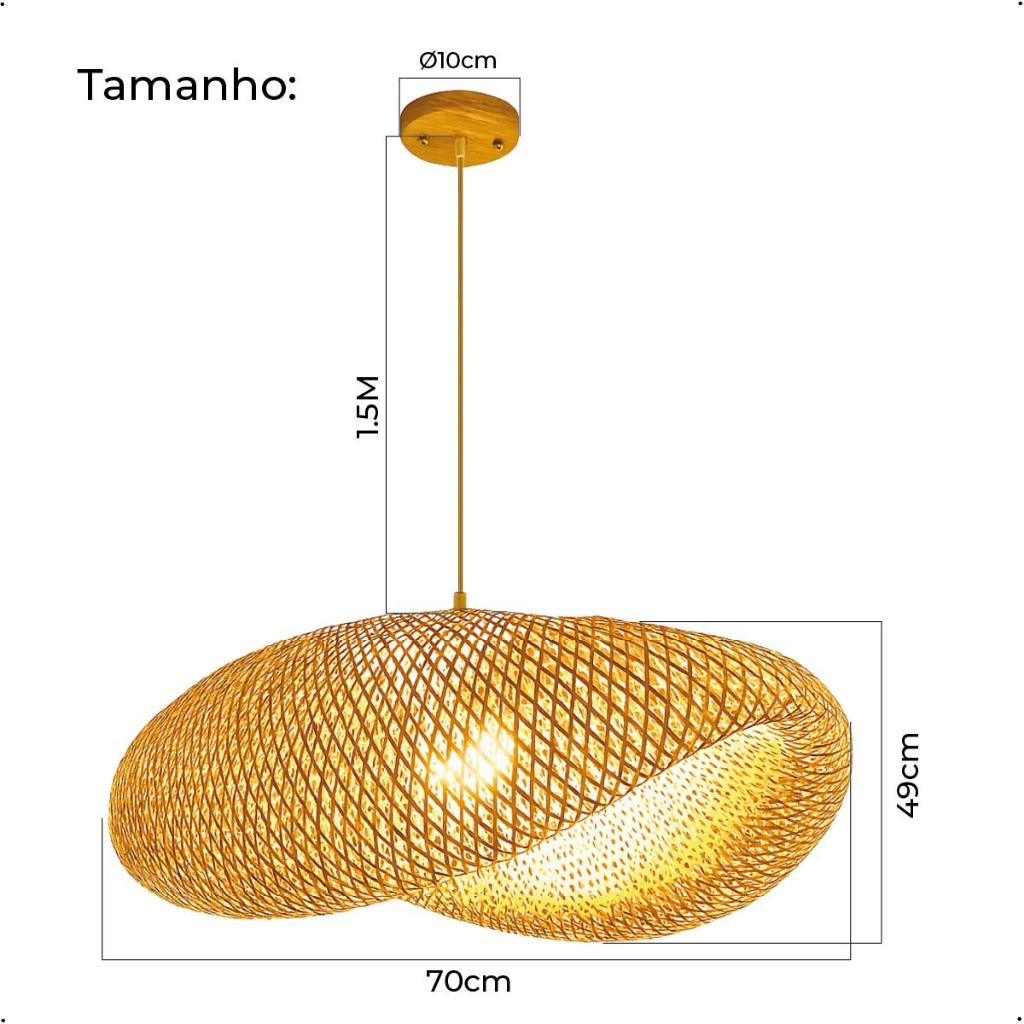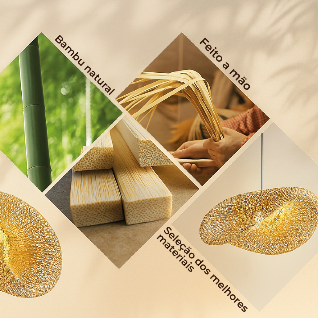 Luminária Pendente Lustre Bambu de Luxo Tamanho Grande Moderna Com Ajuste Bivolt