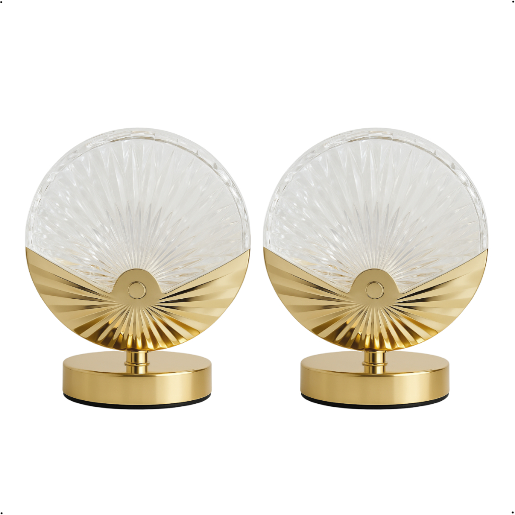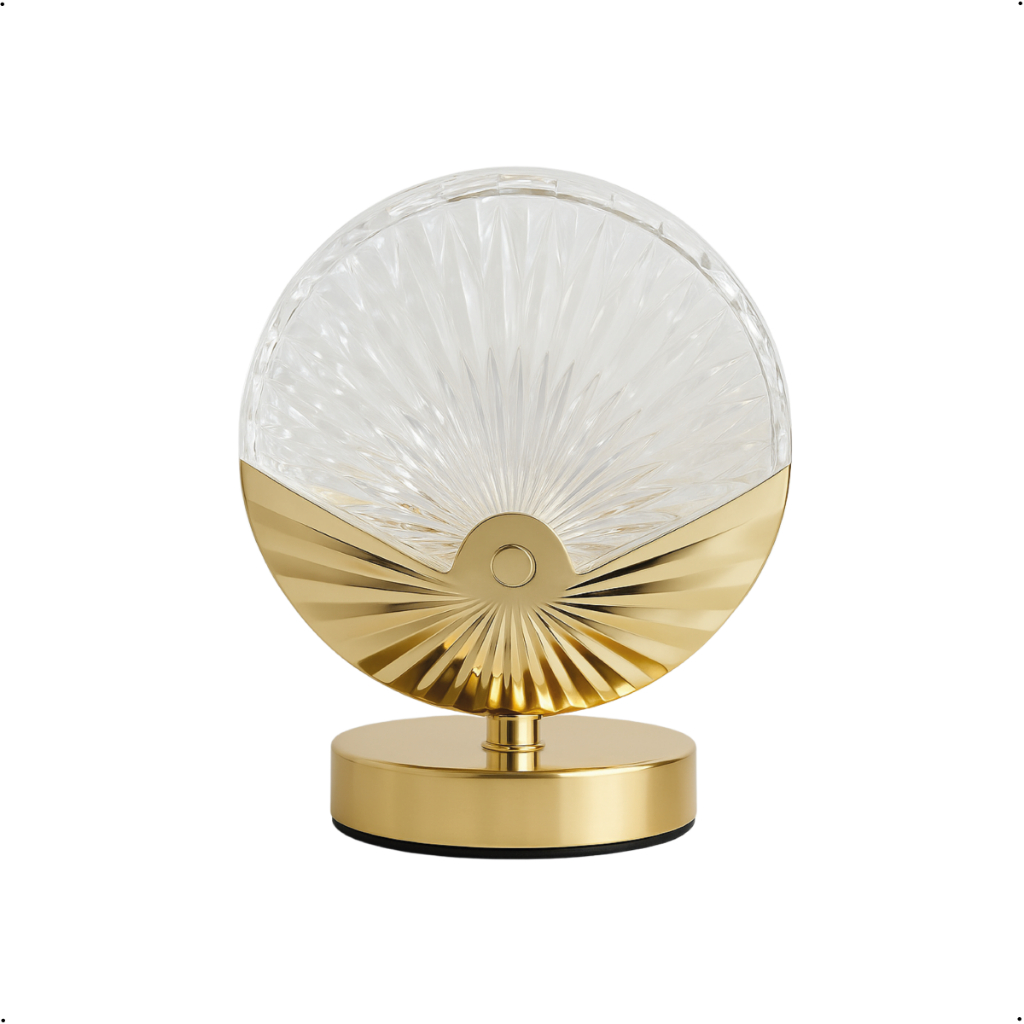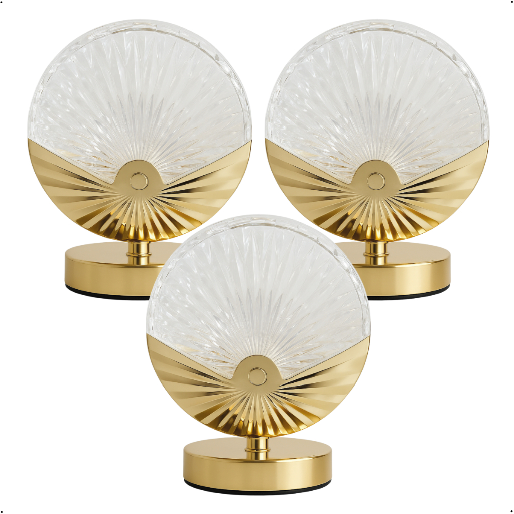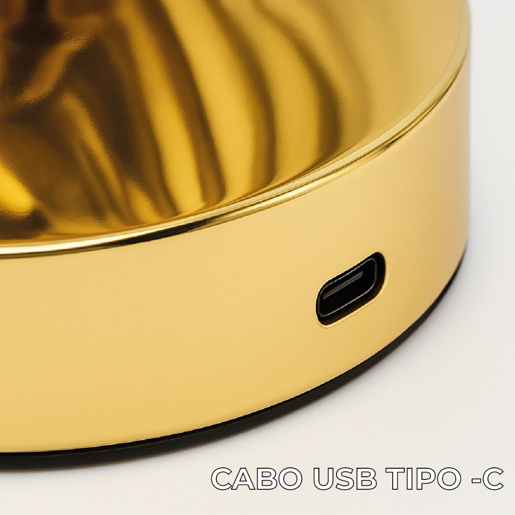 Luminária Abajur Concha de Cristal Luxuoso Dourado Led Moderno 3 Tons de Luz via USB Bivolt
