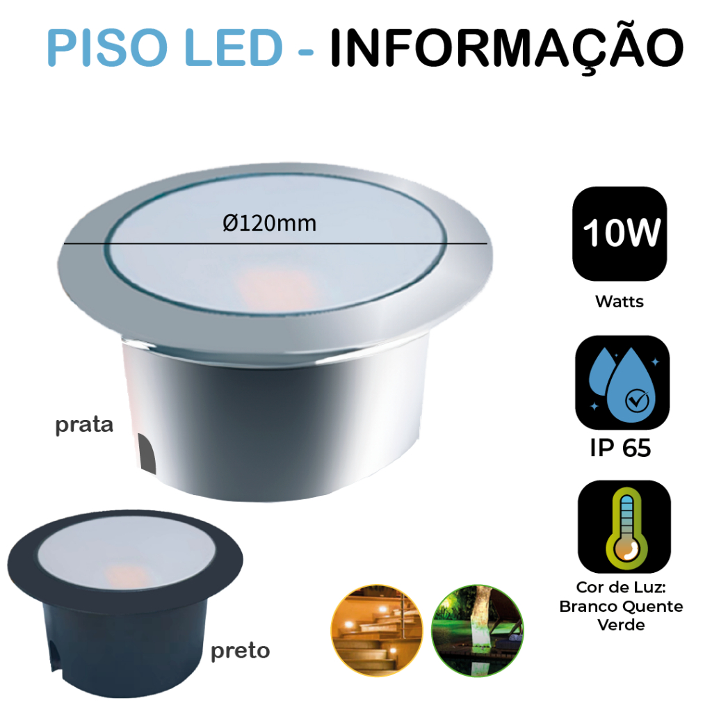 Kit 6 Balizador Spot LED Embutir Chão Piso Jardim 10W Luz Quente e Verde IP65 Bivolt 60Hz