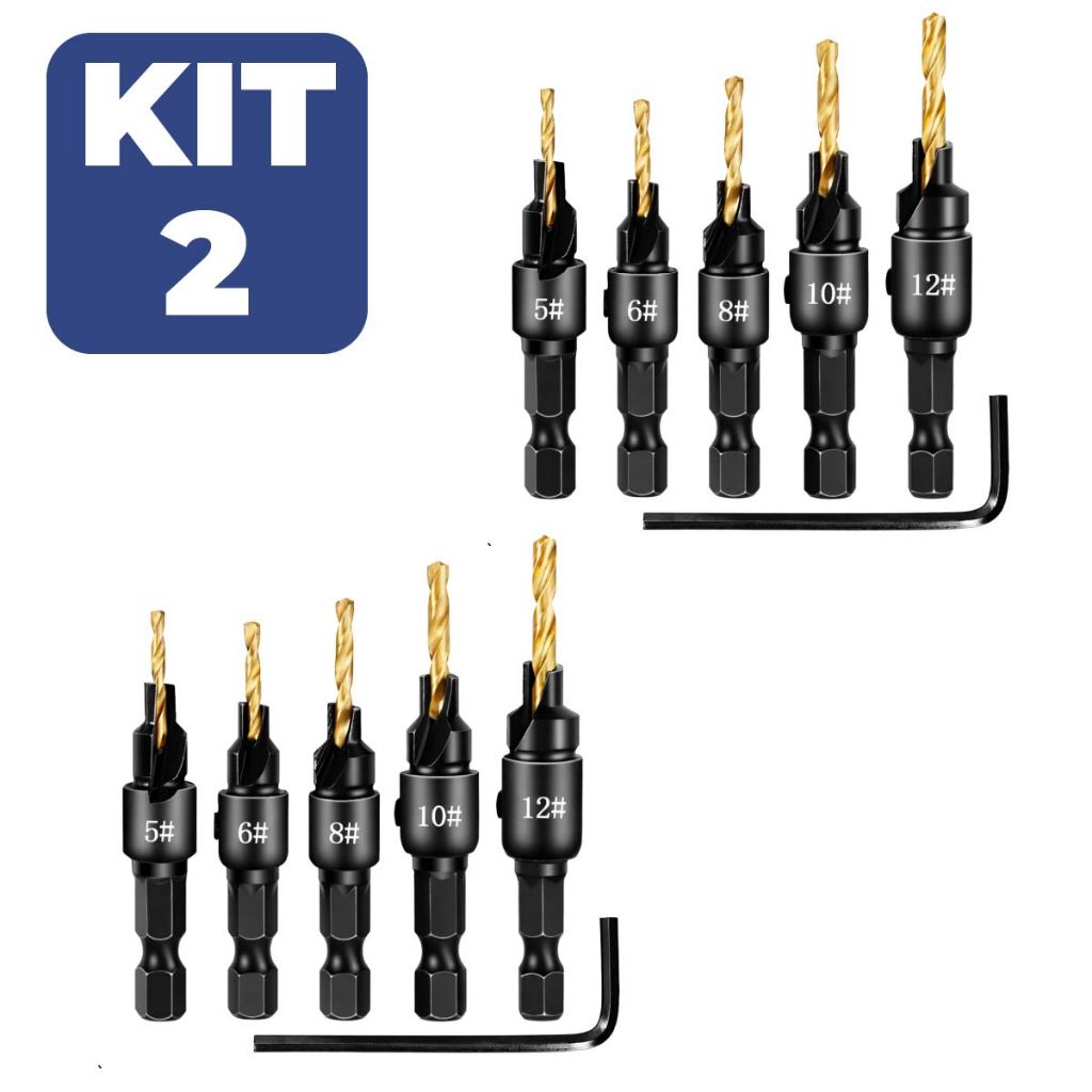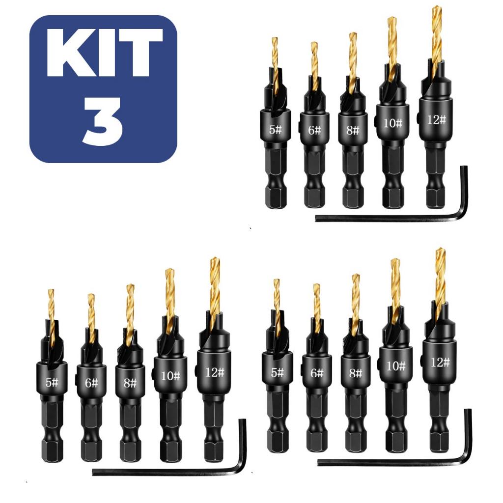 Jogo Broca Escariadora para Madeira com Escaneadores Ajustáveis Alta Durabilidade