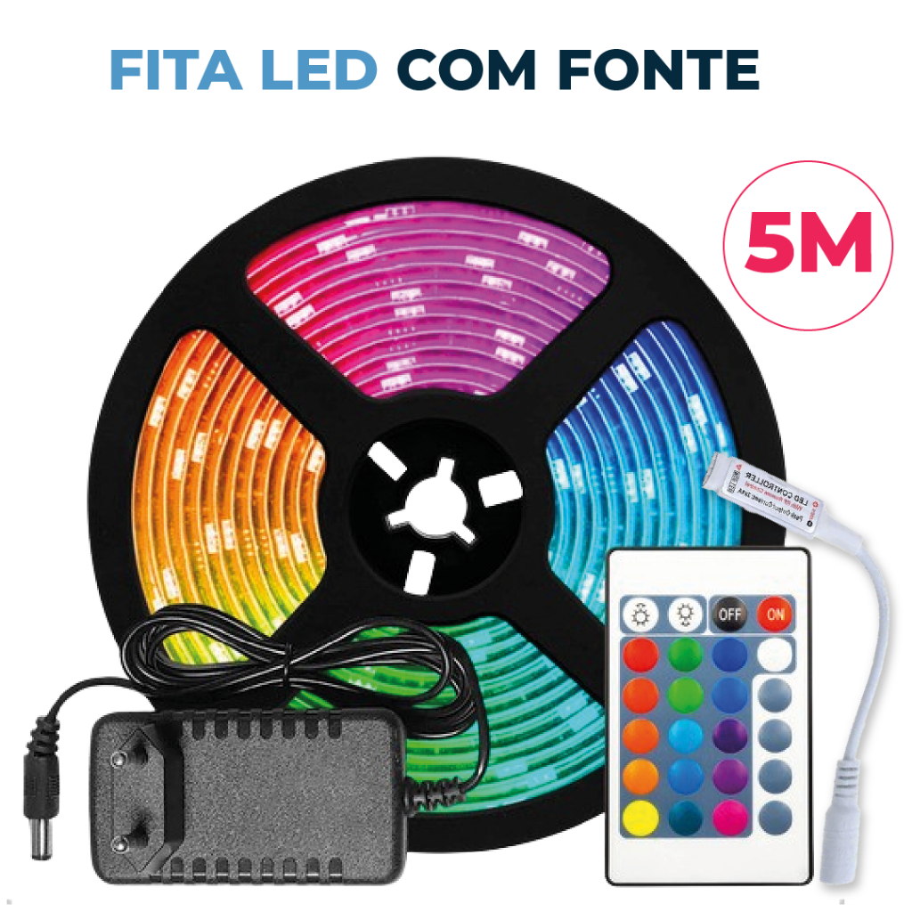 Fita LED 5050 SUPER LED ULTRA RGB 15M 12V 300 LEDS FITA + CONTROLE + FONTE | 16 CORES IP20