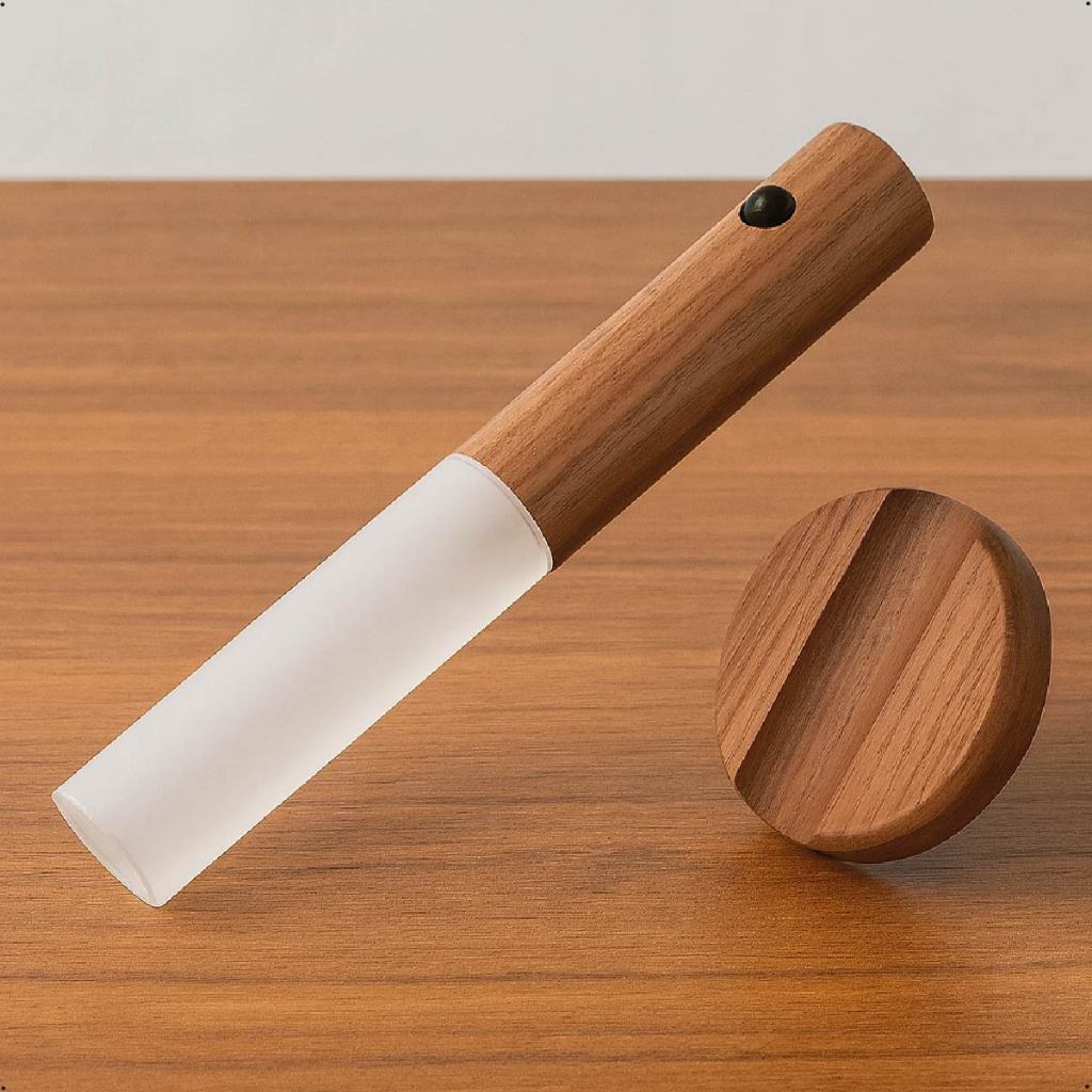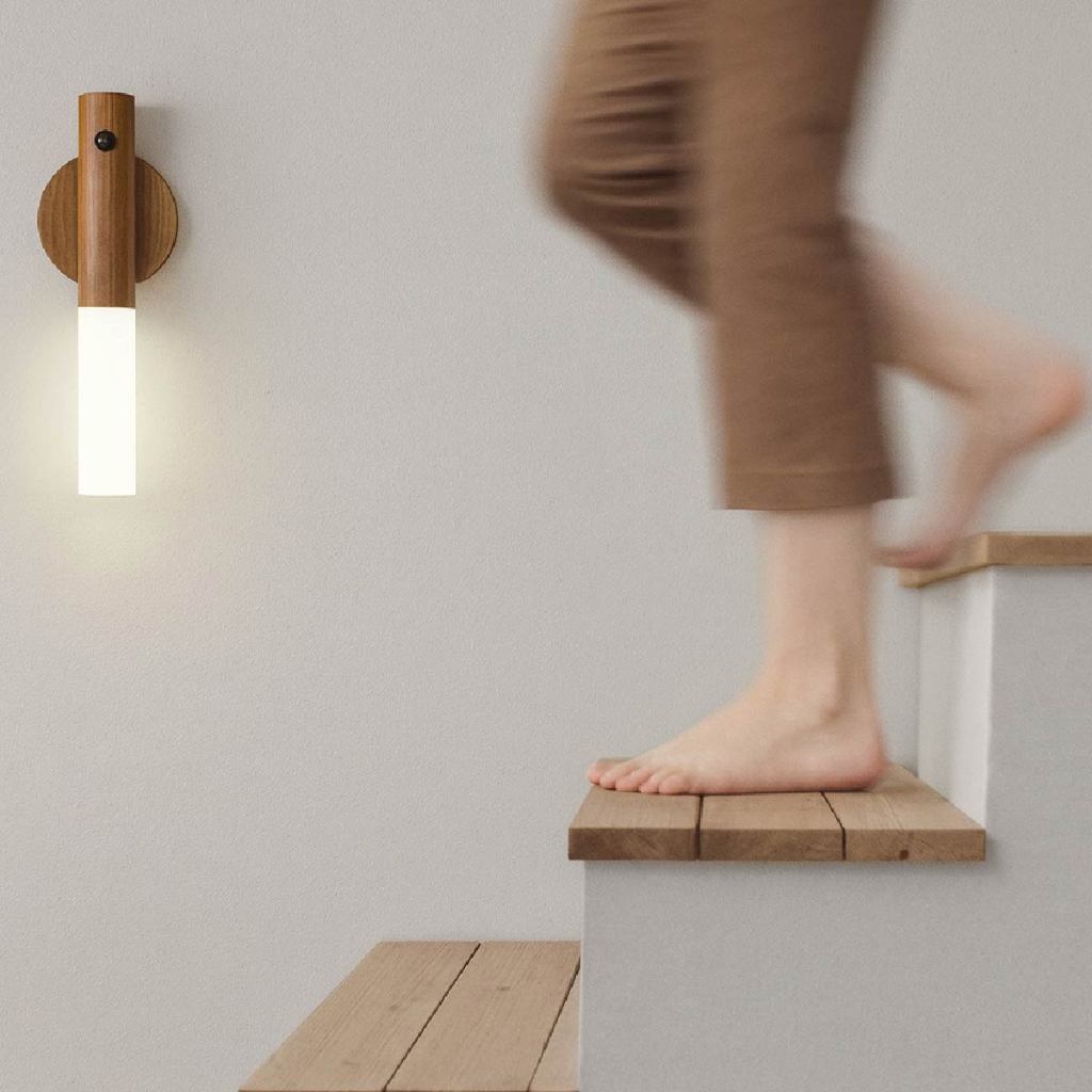 Kit 2-8 Luminária Portátil com Sensor de Movimento Led Moderno Textura Madeira Bastão com Ímã Bivolt