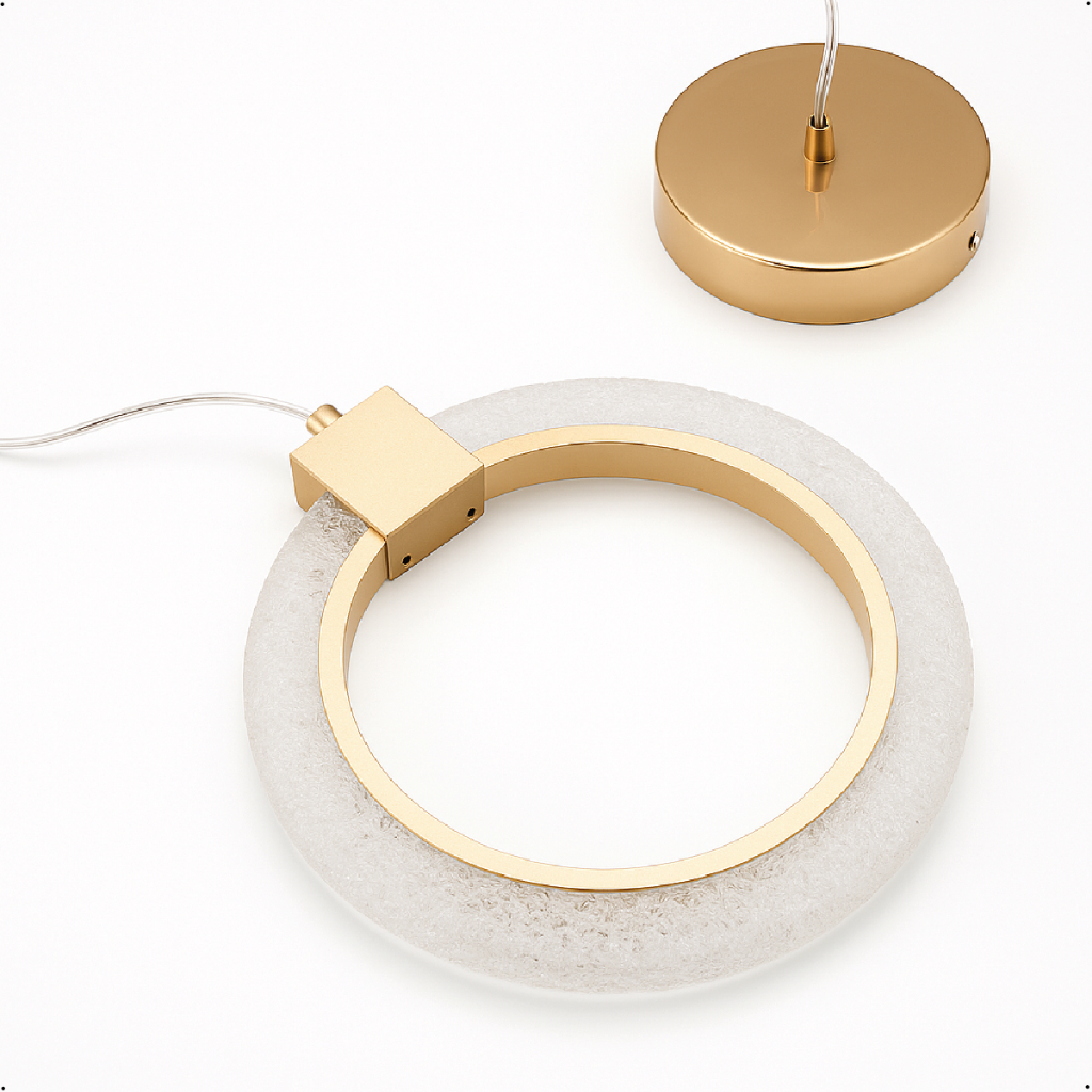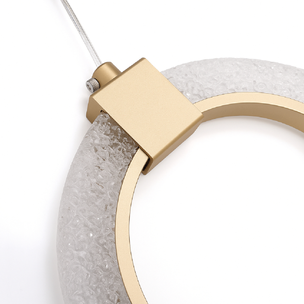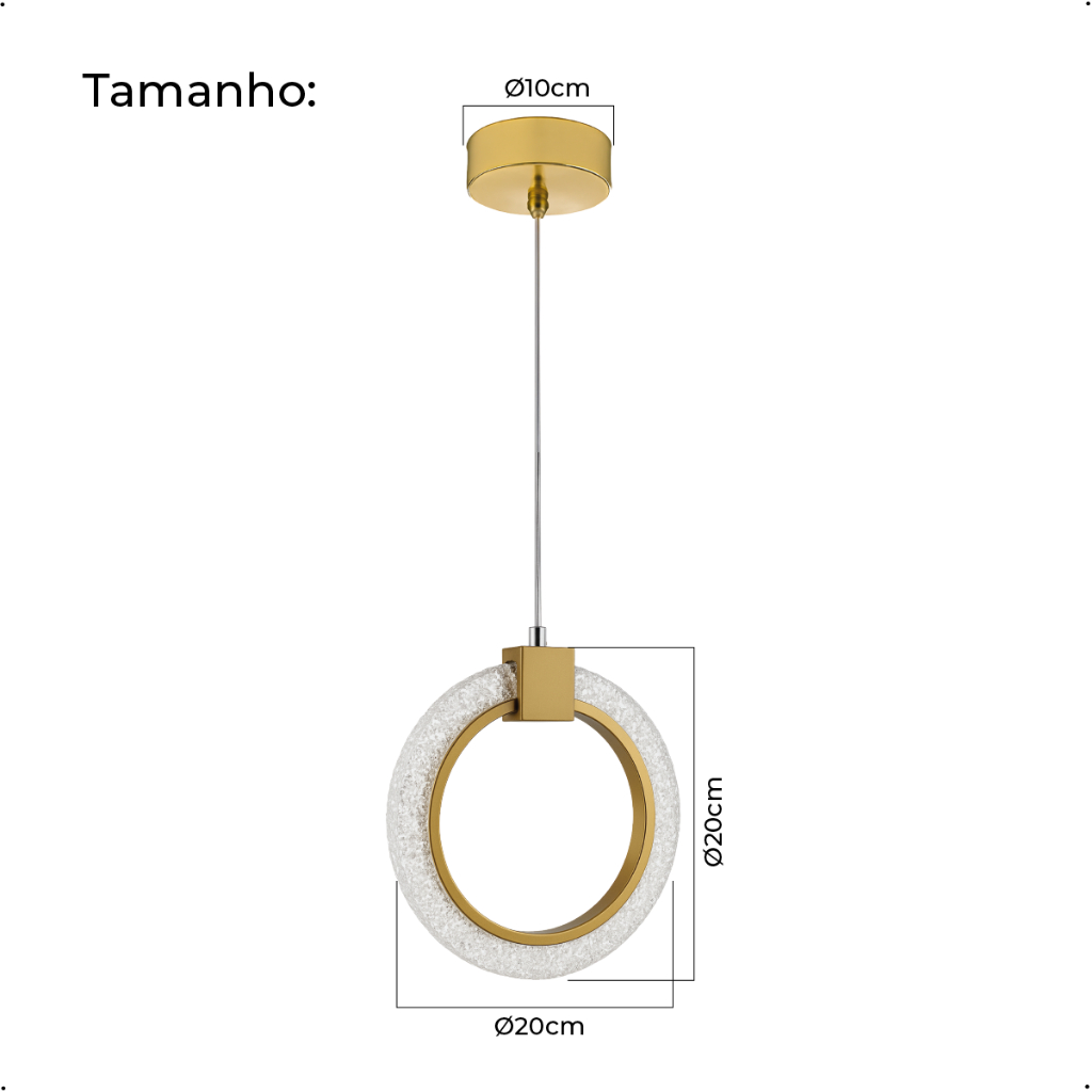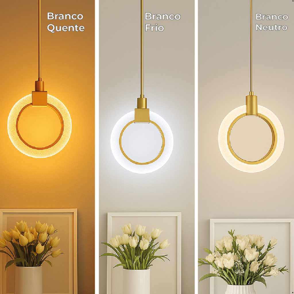 Luminária Pendente Anel Arco Redondo de Cristal Led Dourado Moderno Luxo 3 Tons de Luz Bivolt