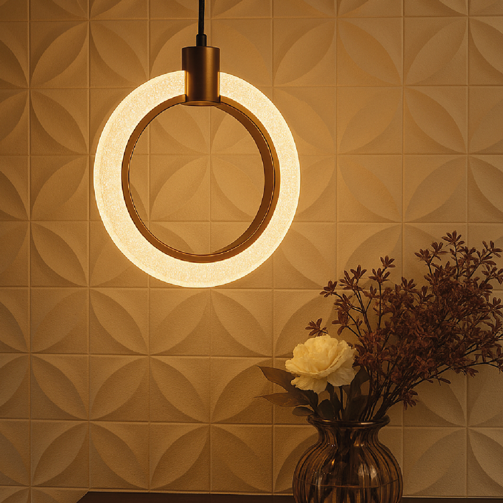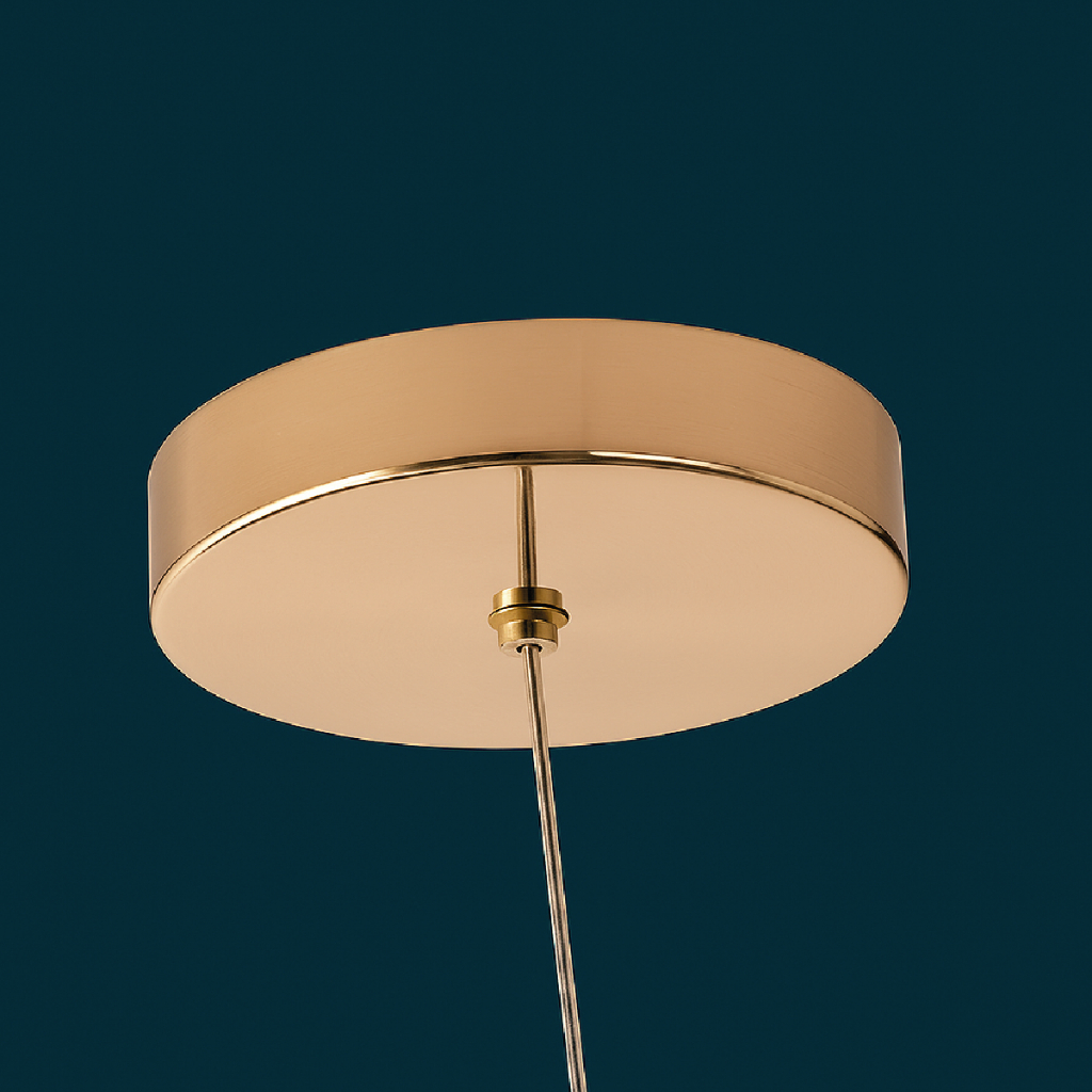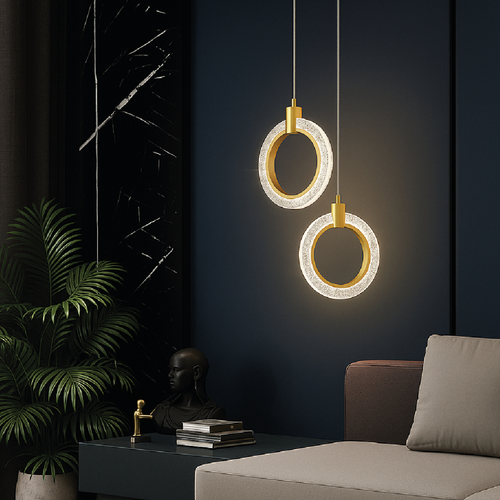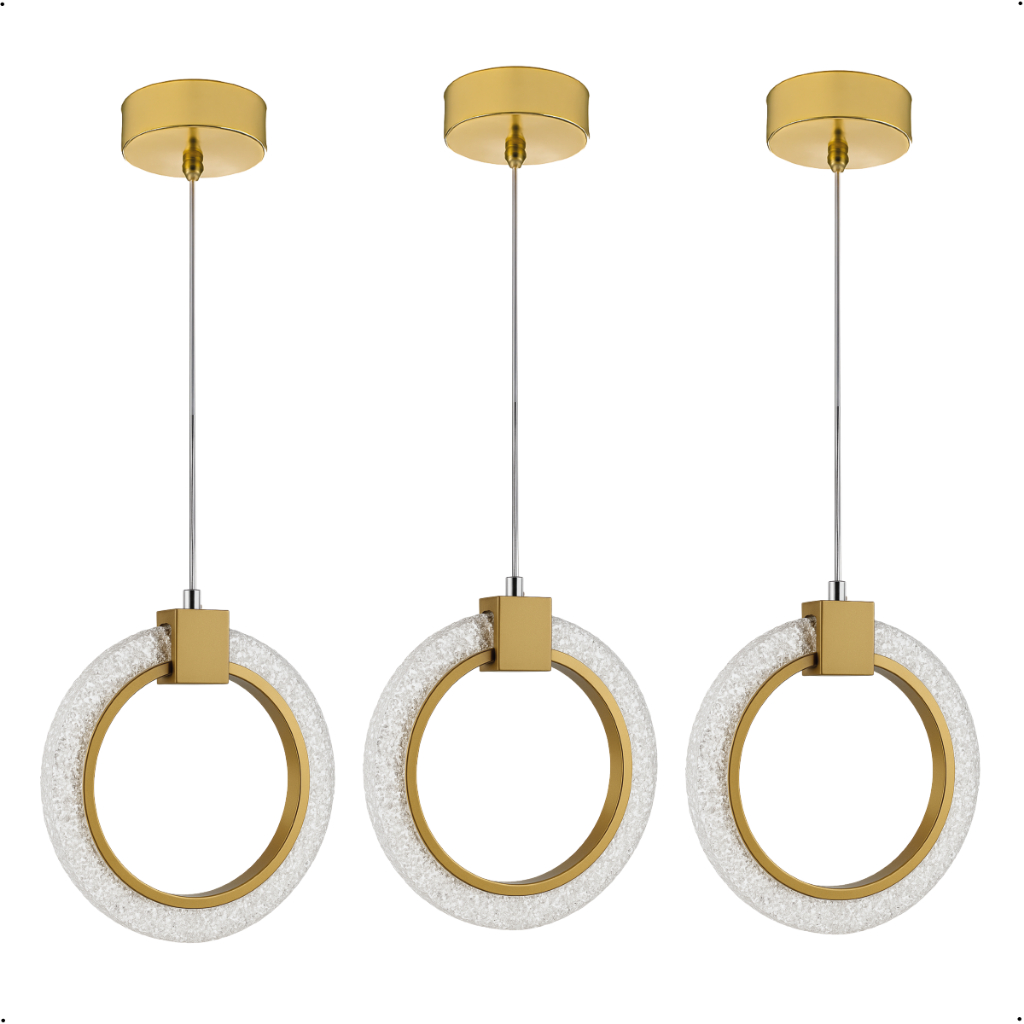 Luminária Pendente Anel Arco Redondo de Cristal Led Dourado Moderno Luxo 3 Tons de Luz Bivolt