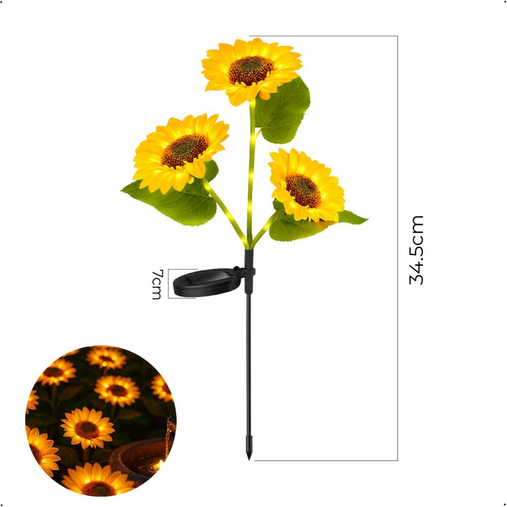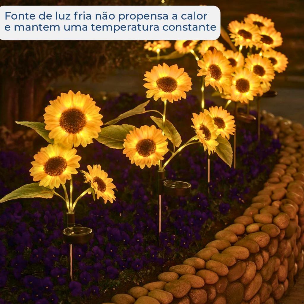 Espeto Jardim Girassol Solar Led com Placa Solar ambientes externos Luz Quente Jardim Decorativo