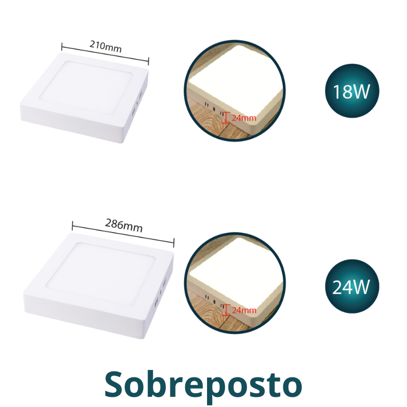 Luminária Painel Plafon Led Alumínio Embutido | Sobrepor | 18W~24W | Branco Frio | Branco Quente | Luz Neutra
