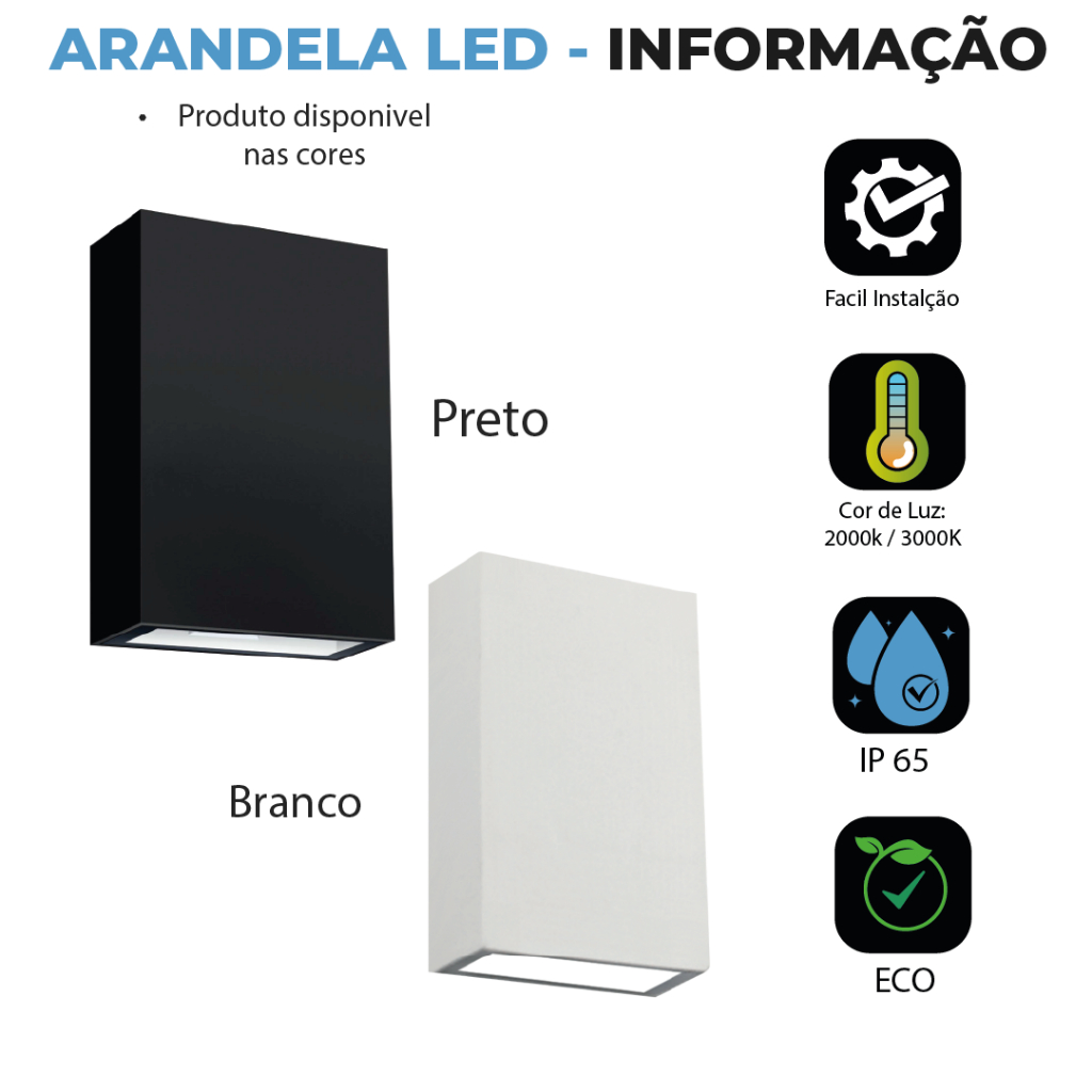 Kit 5 Arandelas LED 4W Slim 2 Focos de Vidro + Luz Embutida, ModeloEuropeu Modernopara Interno e Externo, Preto e Branco