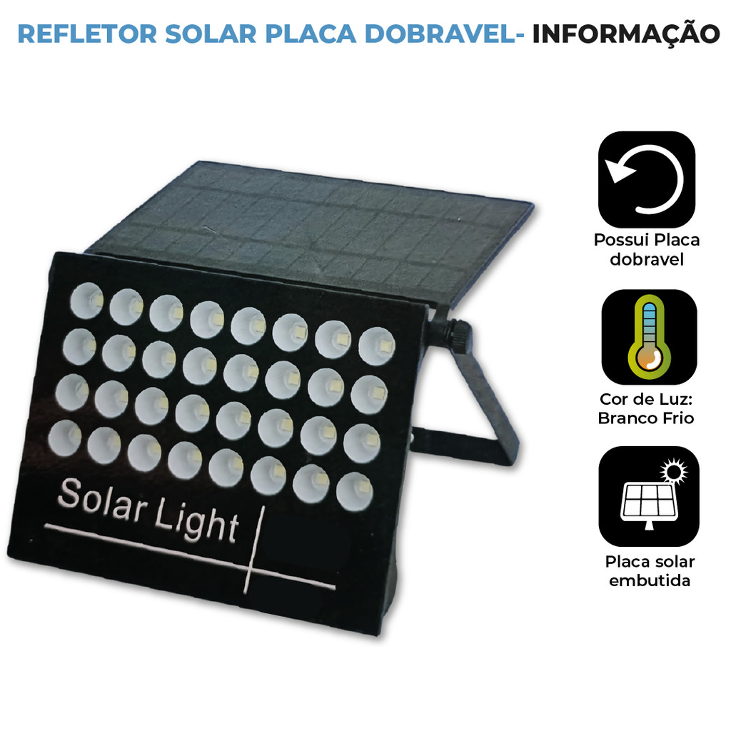 Refletor Solar Led 100w Placa Solar Prova Dágua Ajustável Dobrável Com Controle Remoto