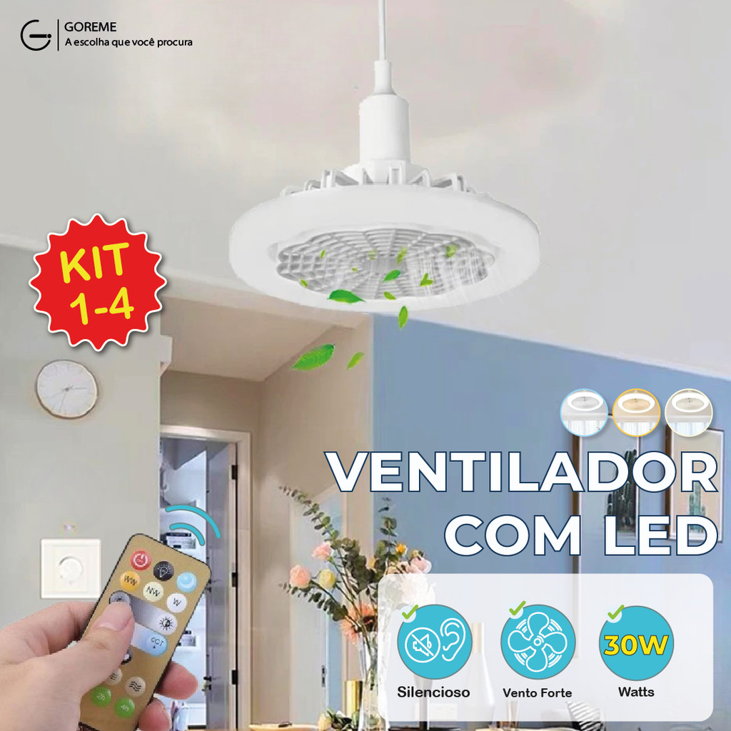 Ventilador de Teto LED Lâmpada E27 ou Resistência c/ Controle Remoto 30W Luminária Economica de Energia Bivolt
