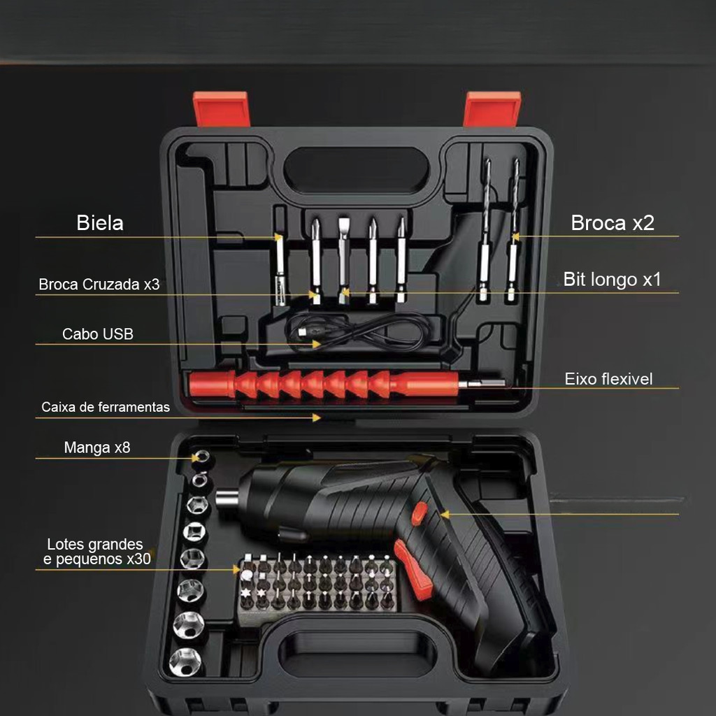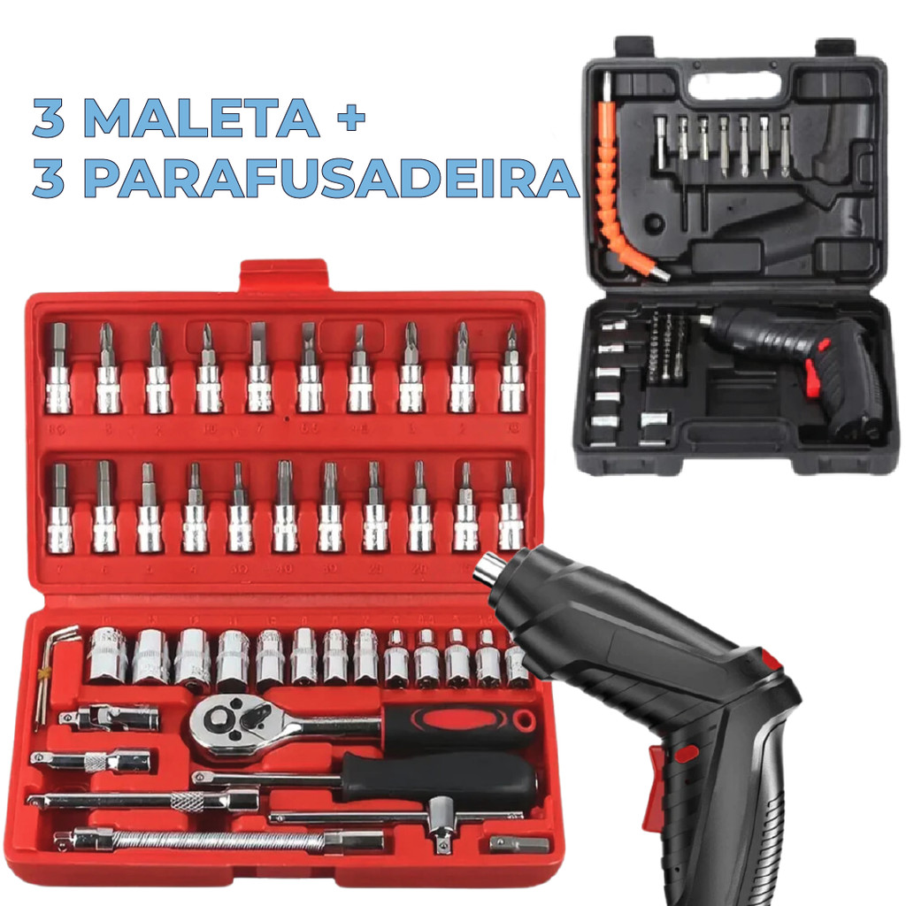 Ferramentas 94 Peças Jogo Soquete com Parafusadeira Furadeira Elétrica com Maleta