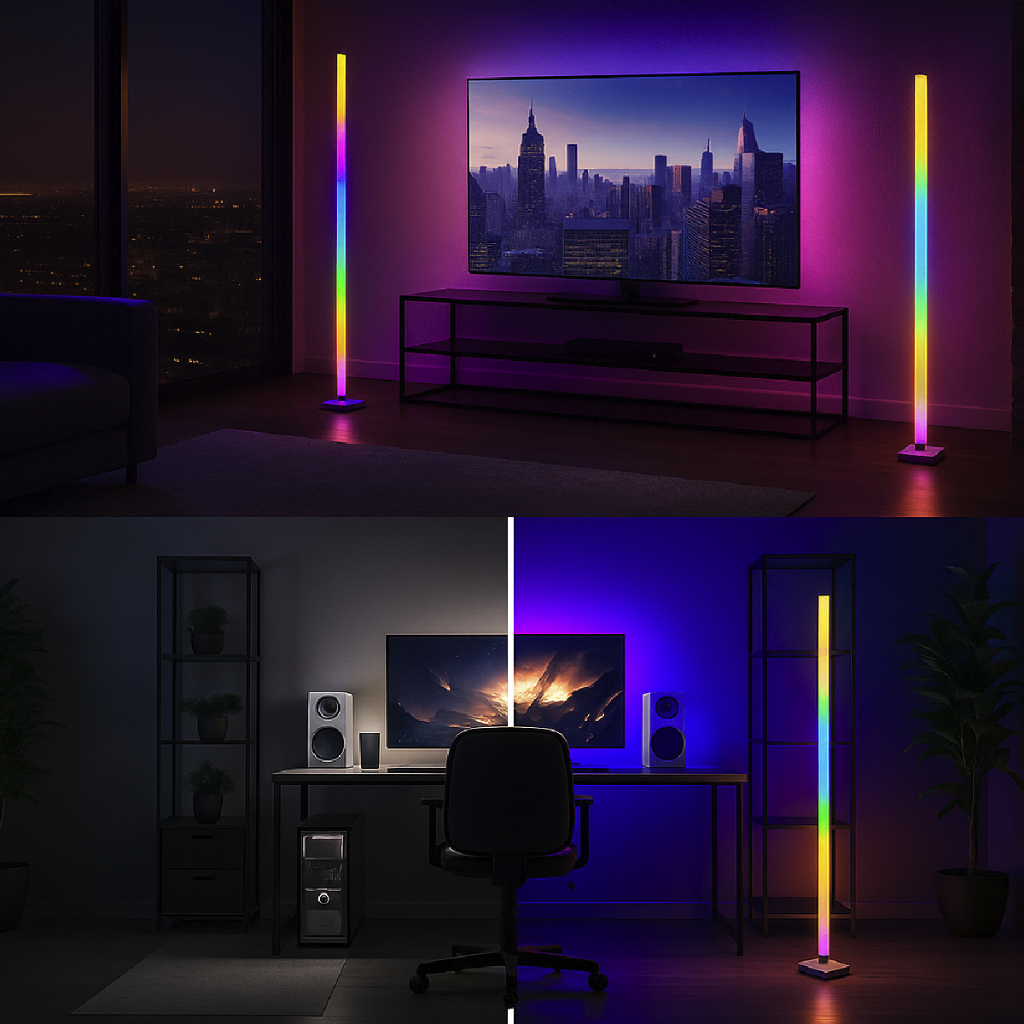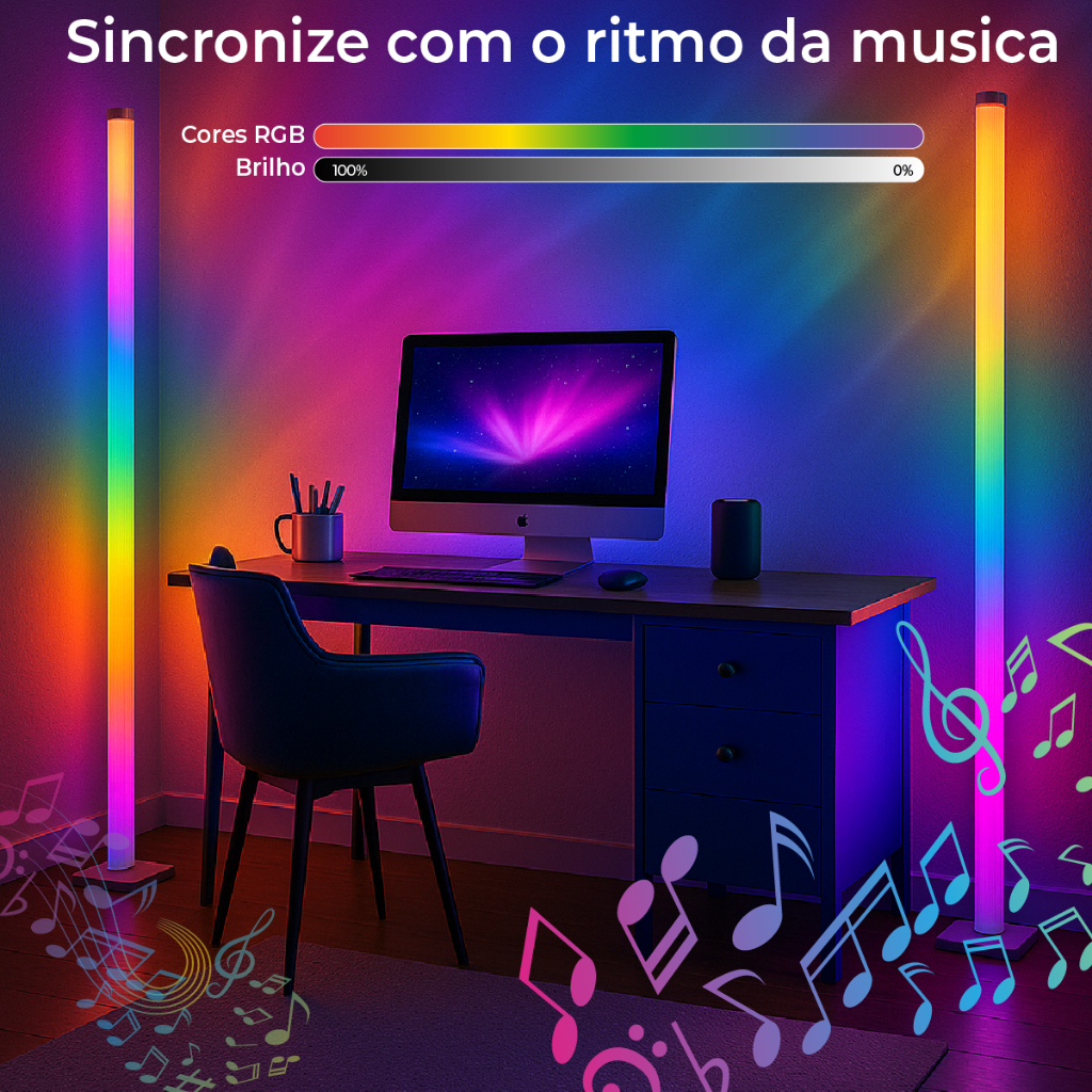 Luminária de Chão RGB LED 5050 Torre Inteligente com Controle 9.6W Barra Modo Música via USB.