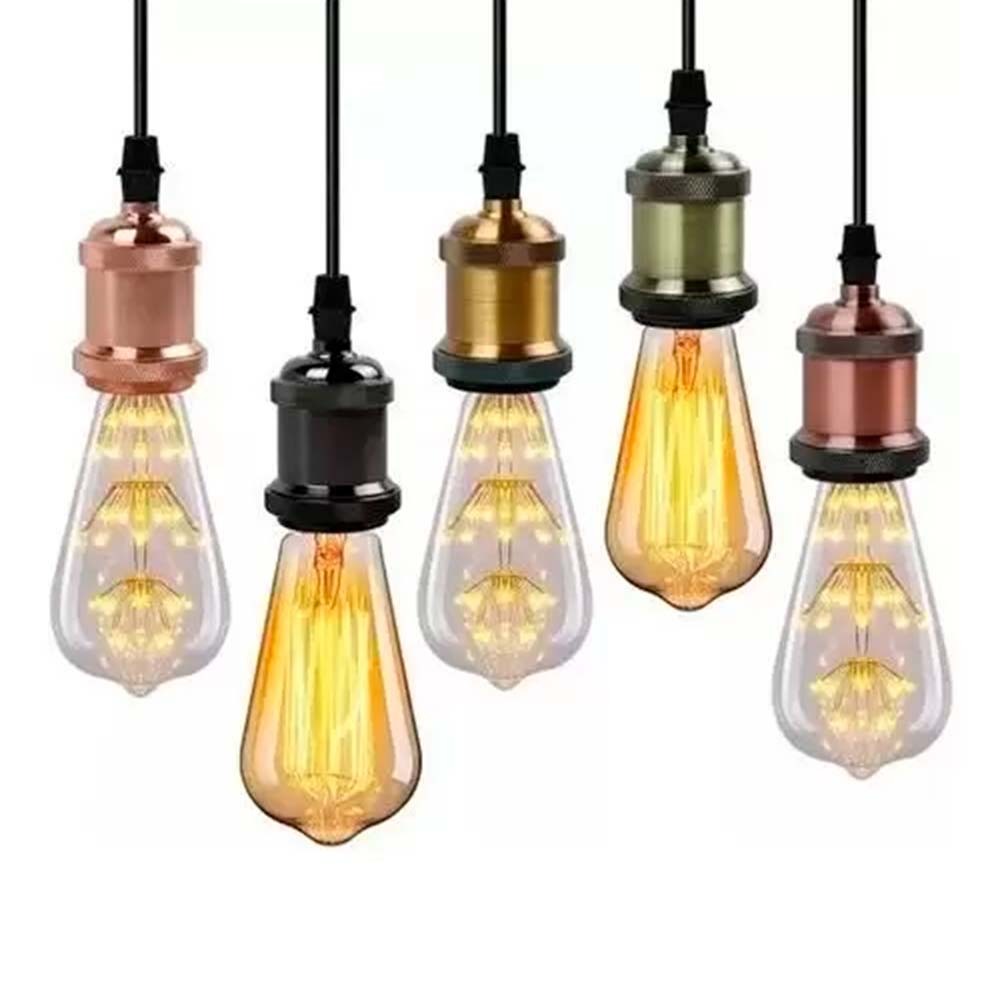 Kit 6 Pendente Antigo Vintage Rustico Decorativo E27 LED A1 VERDE | PRETO | VERMELHO | DOURADO | PRATA