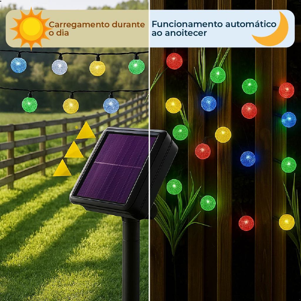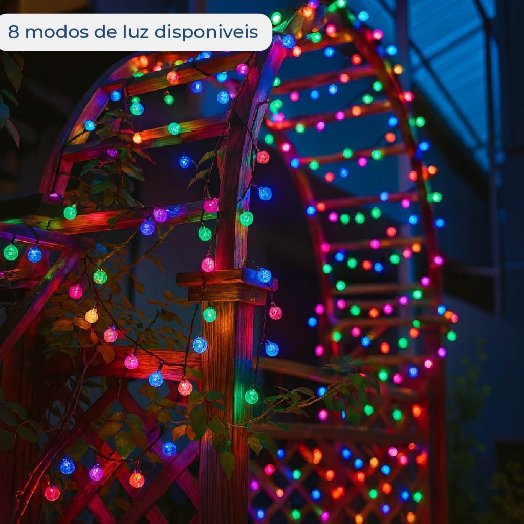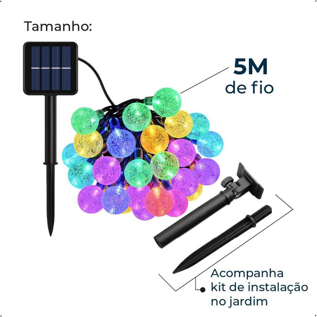 20M Luz Solar Fio de Fada Bolinha RGB 5M Led Com Placa Solar para ambientes externos