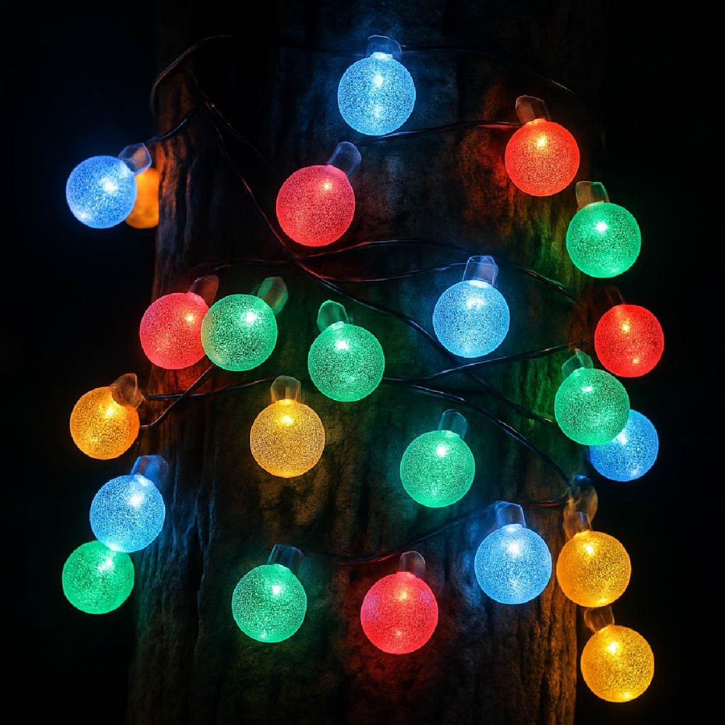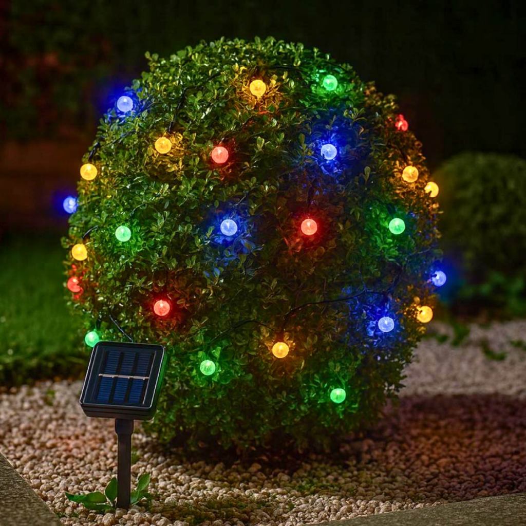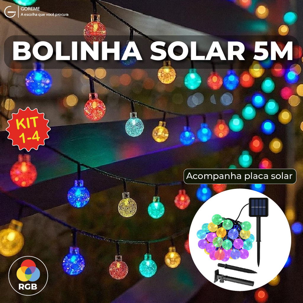 20M Luz Solar Fio de Fada Bolinha RGB 5M Led Com Placa Solar para ambientes externos