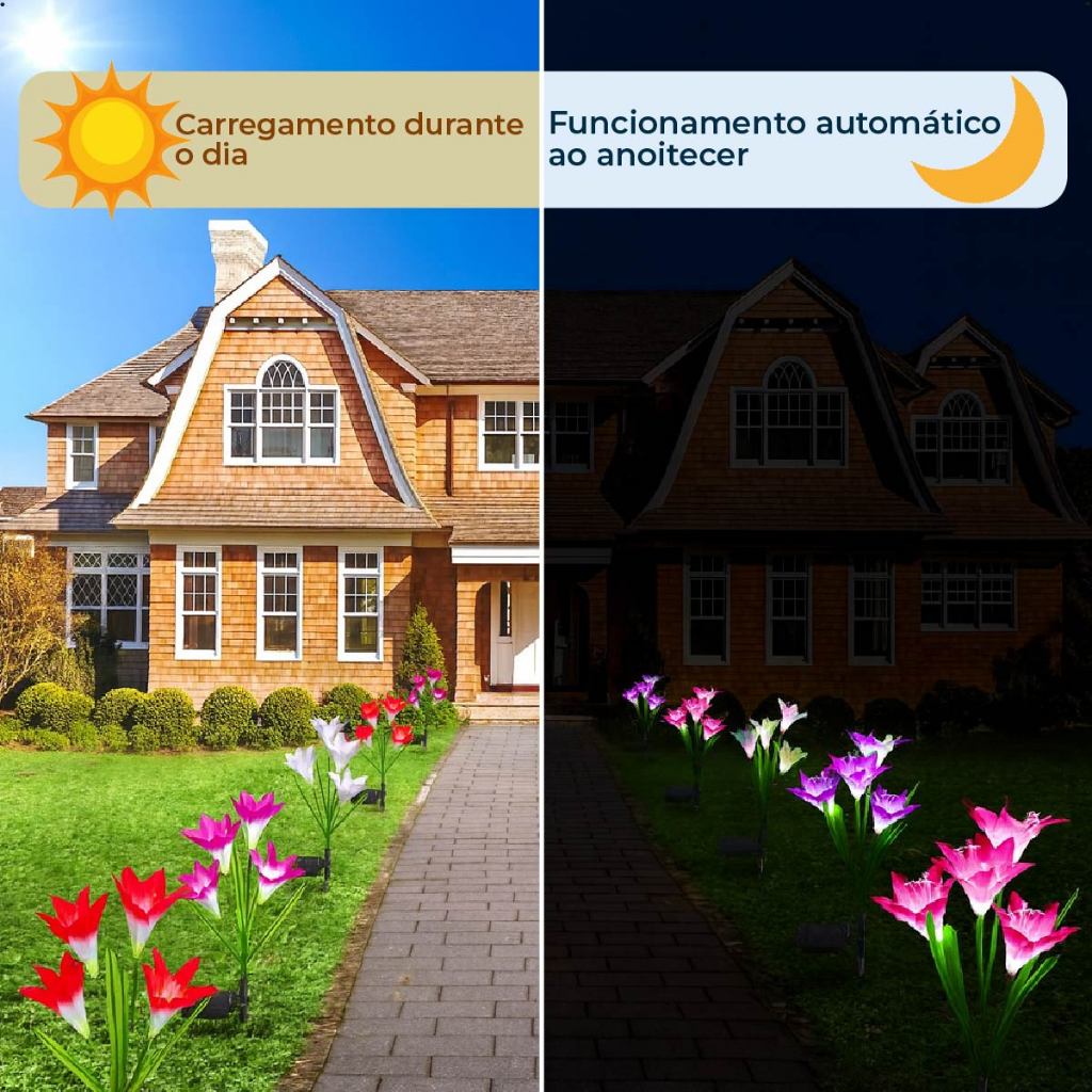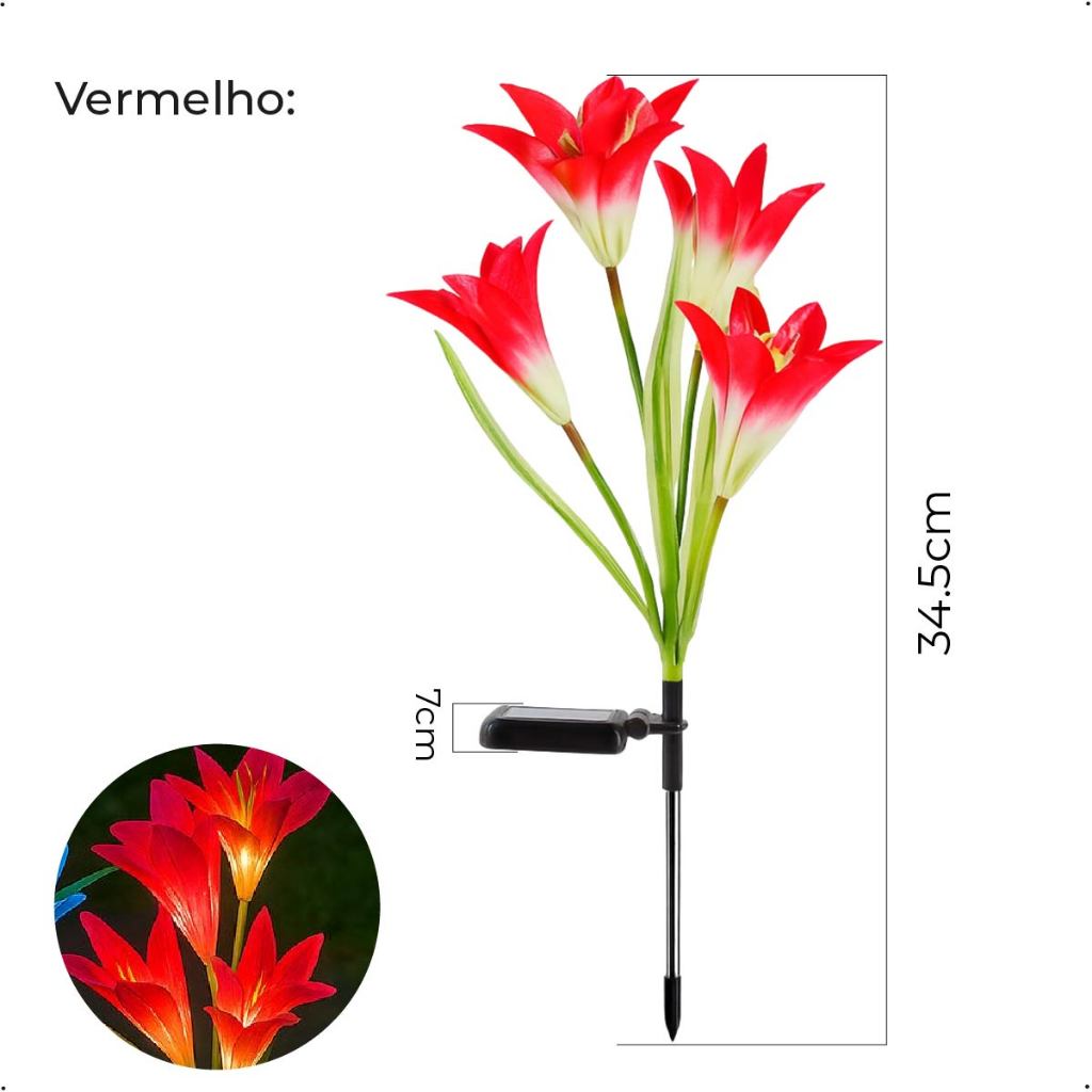 Espeto Jardim Lírio Solar Led com Placa Solar para ambientes externos Jardim Decorativo