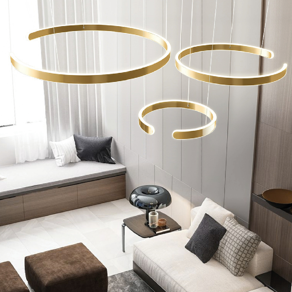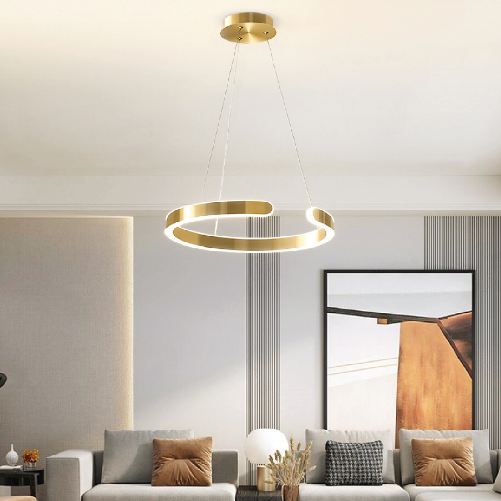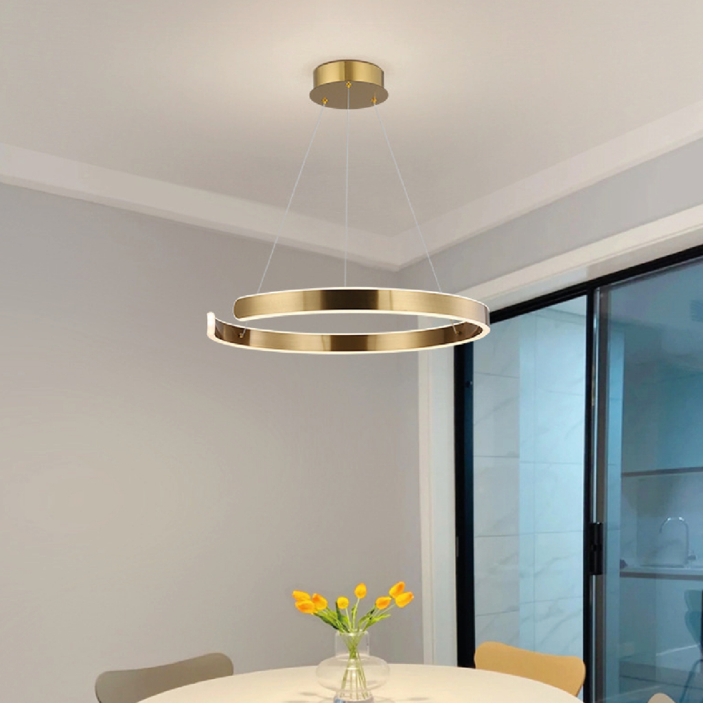 Pendente Lustre Dourado Luxo Moderno Luz Quente Luminária Anel 110V-220V Bivolt