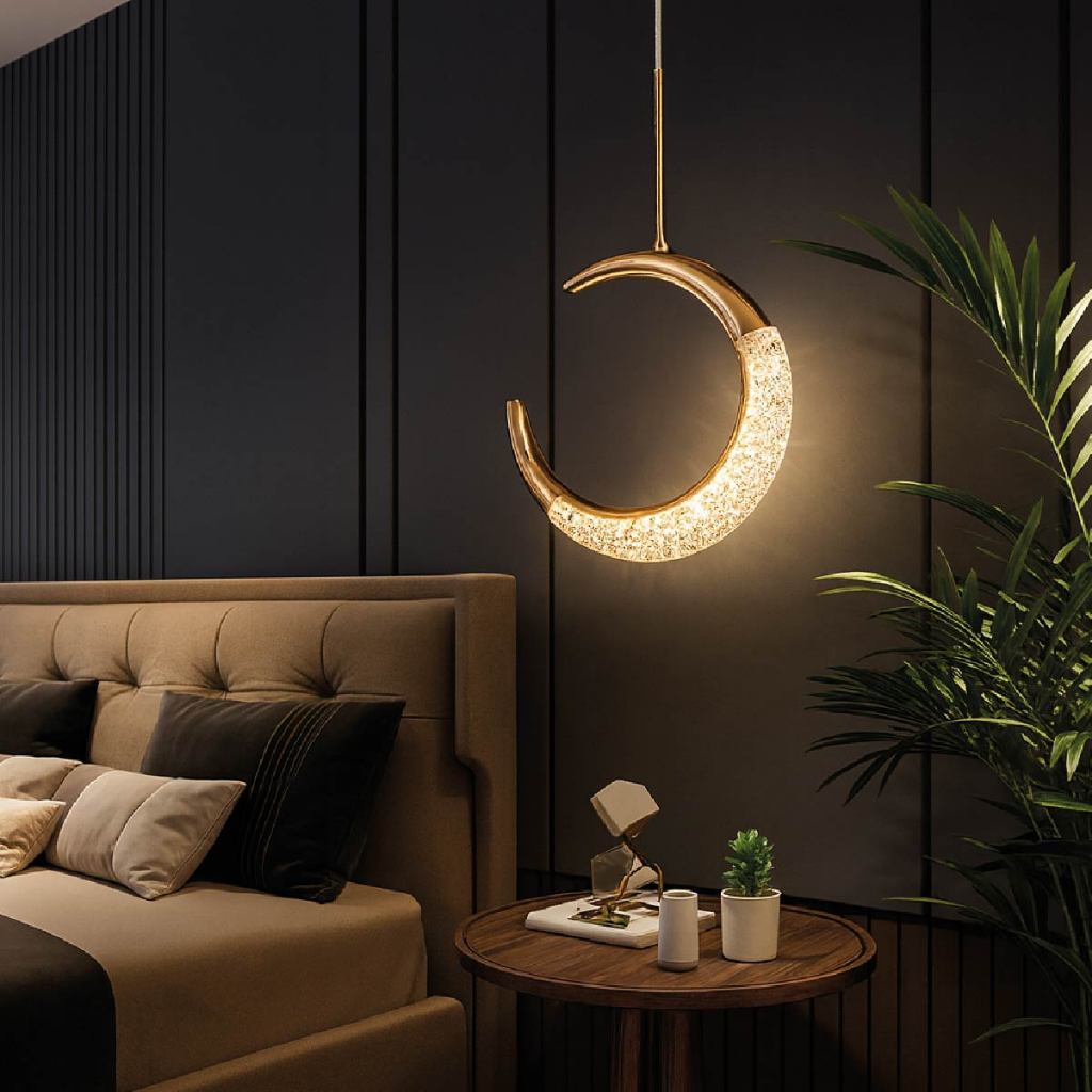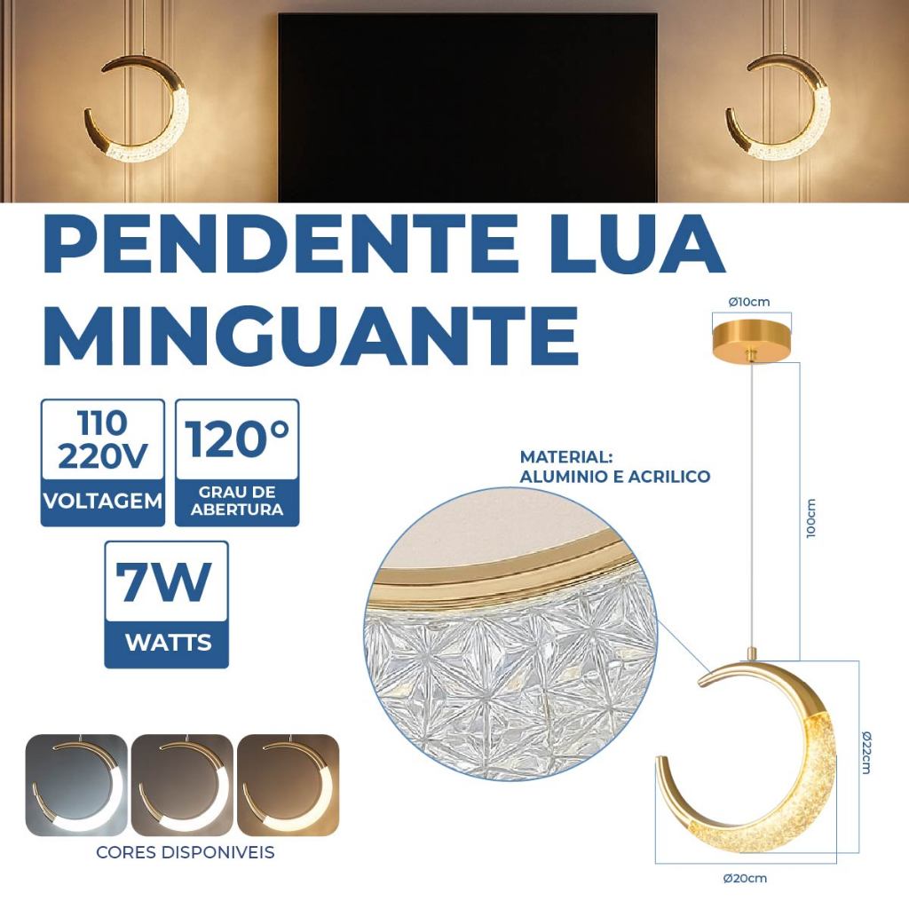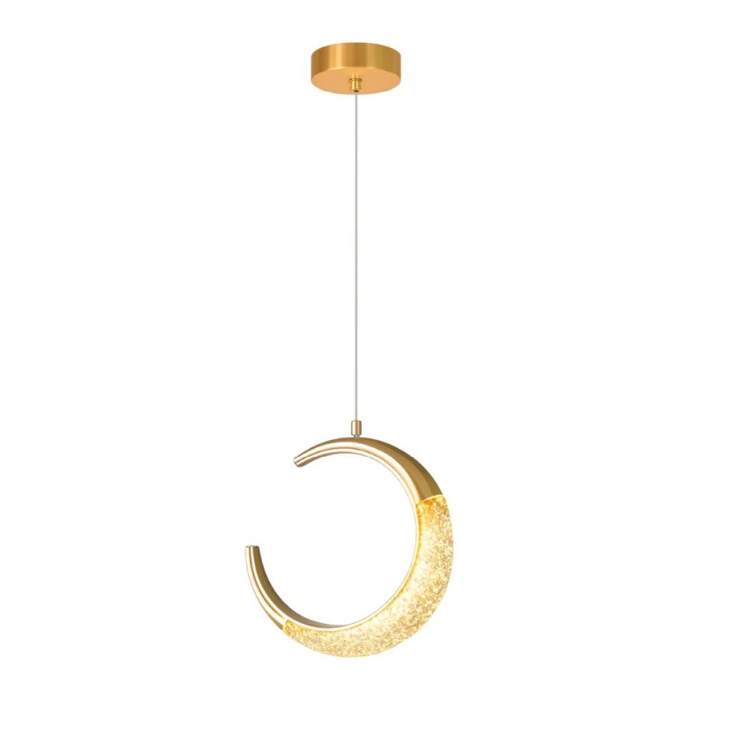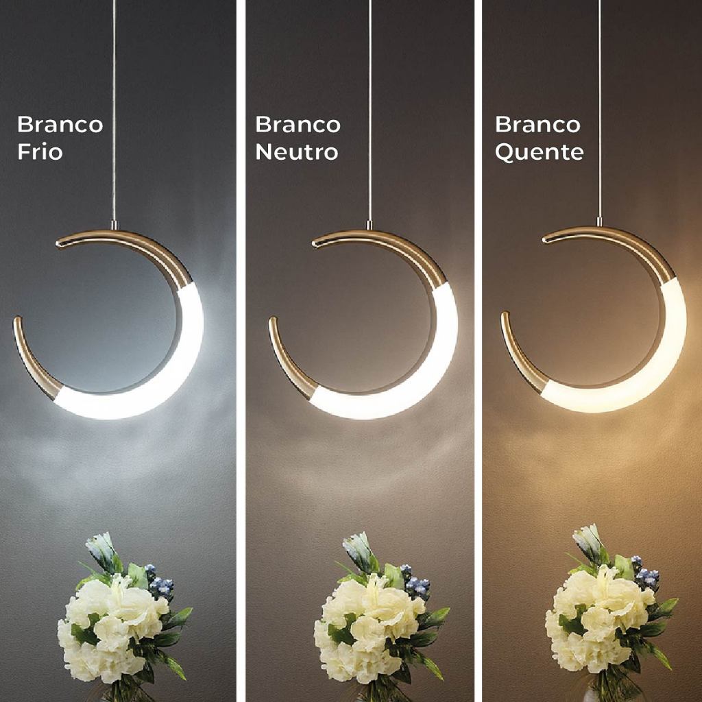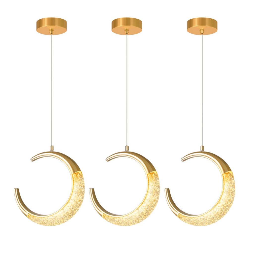 Luminária Lustre Pendente Led Lua Crescente Minguante Dourado Luz Quente 110V-220V Bivolt