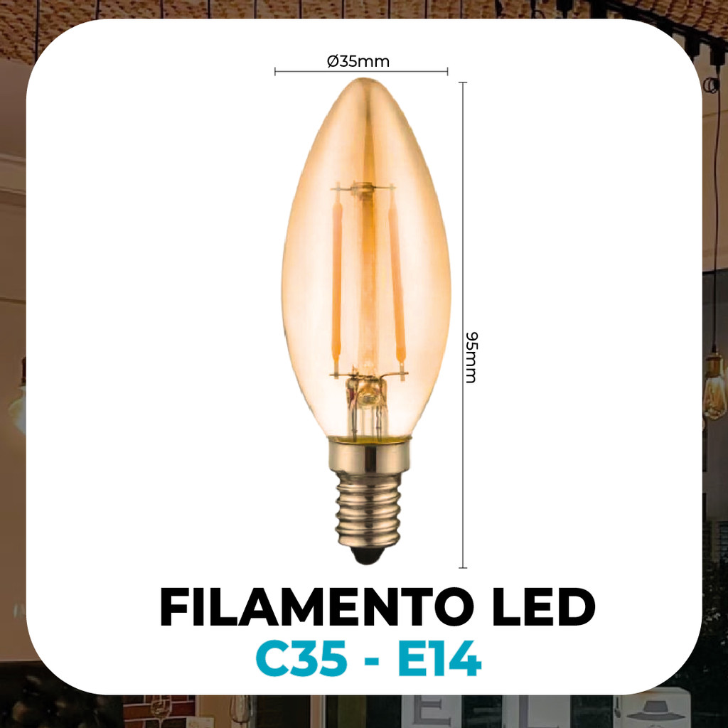 3 Lâmpada Filamento Vela Led Luz Quente C35 G80 G95 G125 G45 ST64 Ambar Retro Vintage 110V-220V Bivolt
