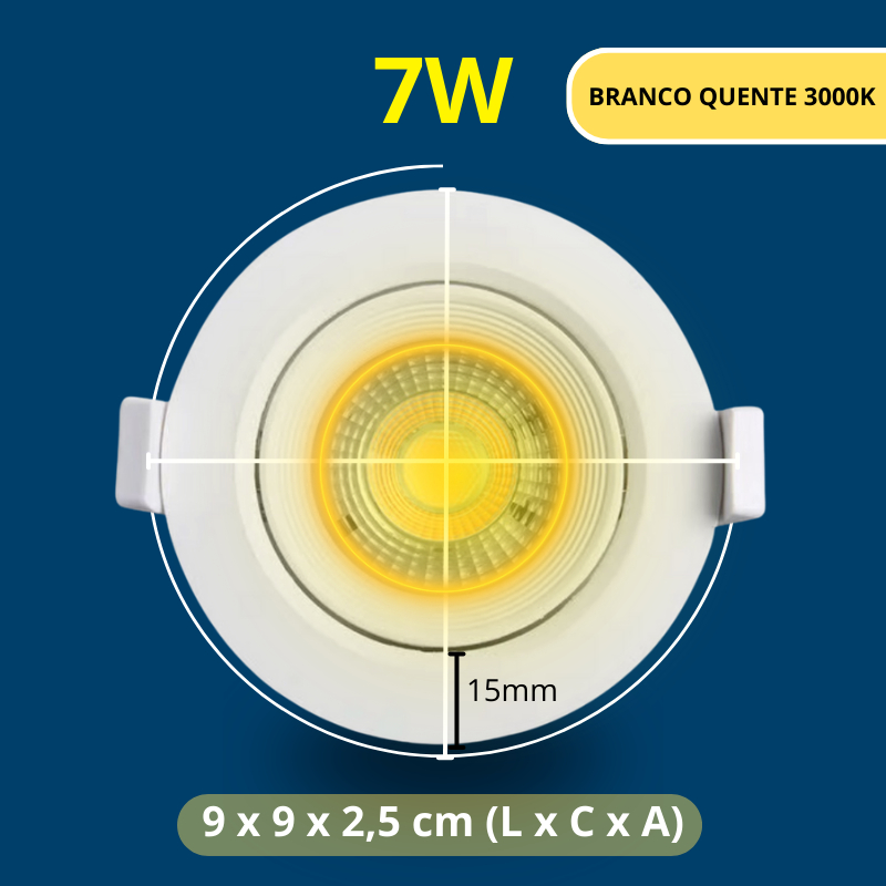 Kit 5 Luminária Spot Led Redondo Direcionável 7W Embutir Gesso Teto | Branco Frio 6500K | Branco Quente 3000K Bivolt