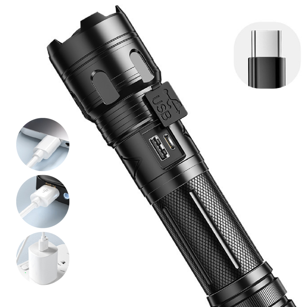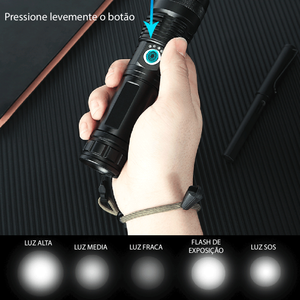 Super Lanterna Titanium Led Tática Militar Recarregável USB Ultra Potente a Prova Dágua